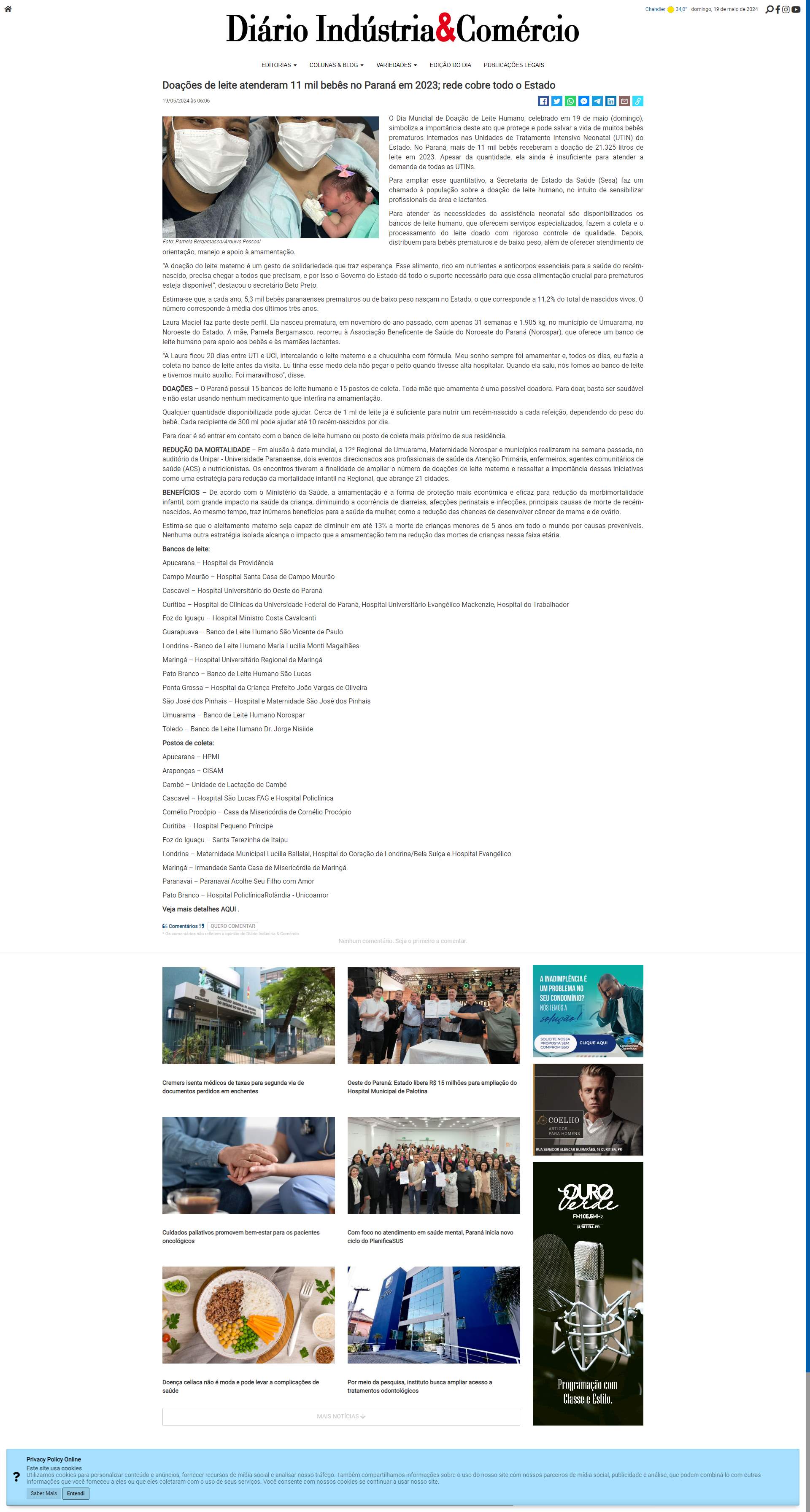 Paraná (Norospar), que oferece um banco de leite humano para apoio aos bebês e às mamães lactantes.