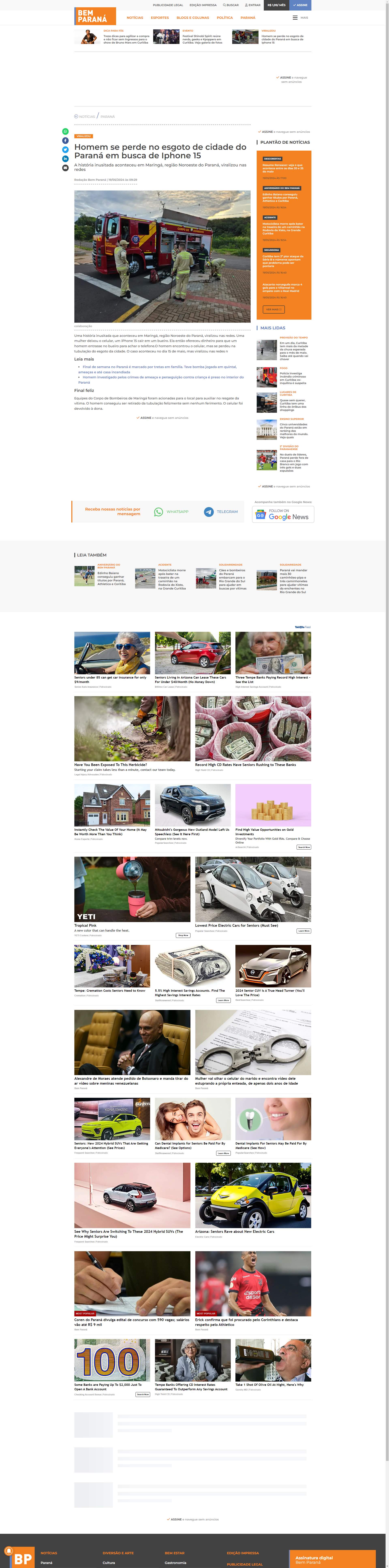 Paraná, viralizou nas redes. Uma mulher deixou o celular, um iPhone 15 cair em um bueiro. Ela então ofereceu dinheiro para que um homem entrasse no bueiro para achar o telefone.O homem encontrou o celular, mas se perdeu na tubulação do esgoto da cidade. O caso aconteceu no dia 15 de maio, mas viralizou nas redes n