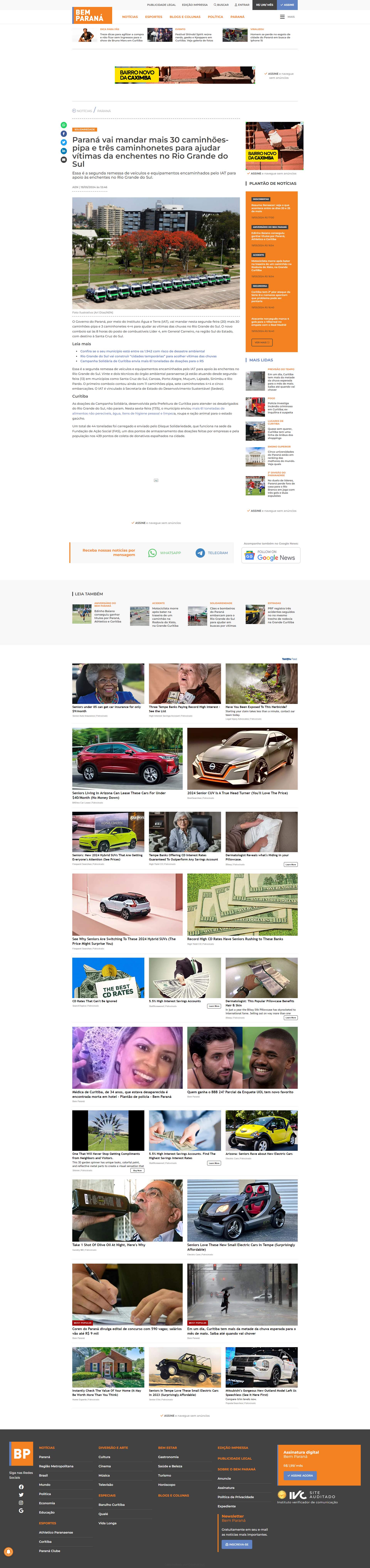 Essa é a segunda remessa de veículos e equipamentos encaminhados pelo IAT para apoio às enchentes no Rio Grande do Sul. Vinte e dois técnicos do órgão ambiental paranaense já estão atuando desde segunda-feira (13) em municípios como Santa Cruz do Sul, Canoas, Porto Alegre, Muçum, Lajeado, Sinimbu e Rio Pardo. O primeiro comboio contou ainda com 11 caminhões-pipa, sete caminhonetes 4×4 e cinco embarcações. O IAT é vinculado à