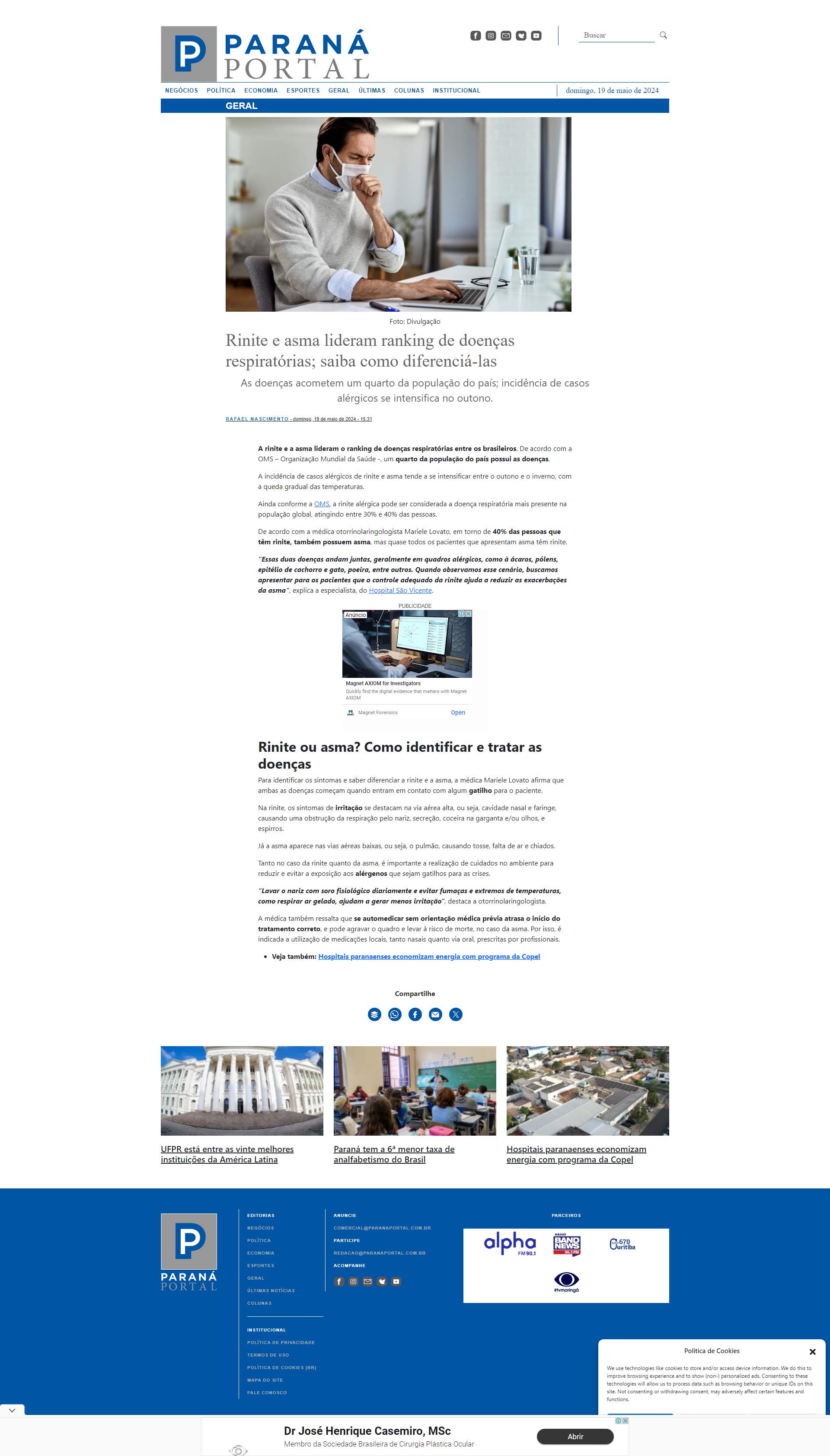 O post Rinite e asma lideram ranking de doenças respiratórias; saiba como diferenciá-las apareceu primeiro em Paraná Portal.