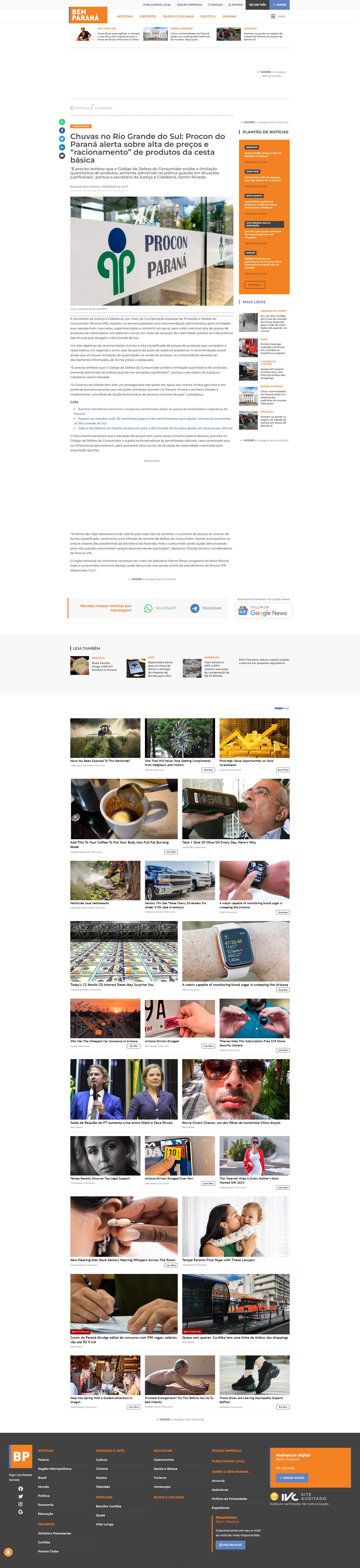 Procon-PR), expediu na semana passada uma recomendação administrativa para entidades que representam mercados, supermercados e comércio em geral, para coibir eventual alta de preços de produtos da cesta básica, em especial o arroz, em razão da situação de calamidade pública em decorrência das chuvas que atingem o Rio Grande do Sul.