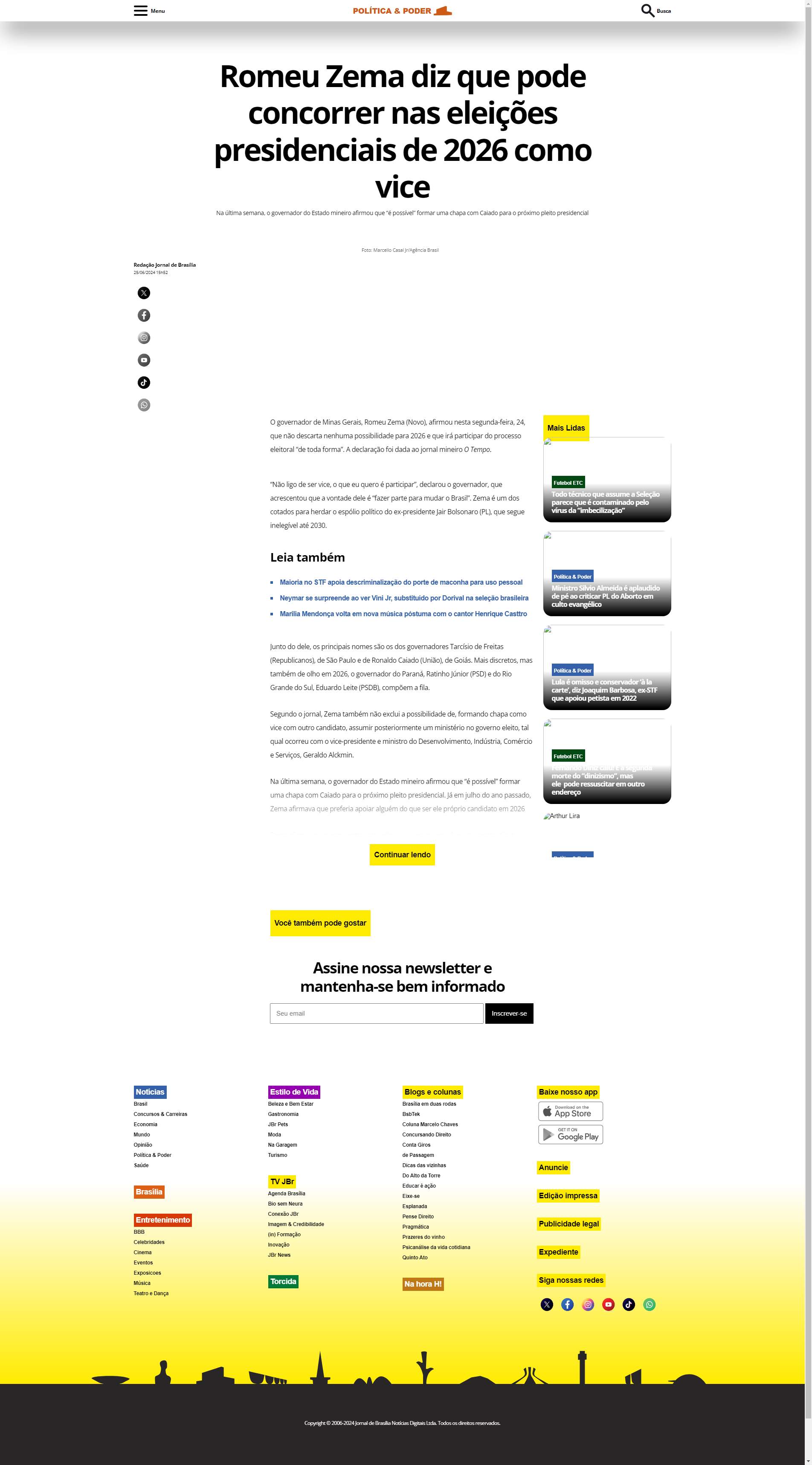 Segundo o jornal, Zema também não exclui a possibilidade de, formando chapa como vice com outro candidato, assumir posteriormente um ministério no governo eleito, tal qual ocorreu com o vice-presidente e ministro do Desenvolvimento, Indústria, Comércio e Serviços, Geraldo Alckmin.