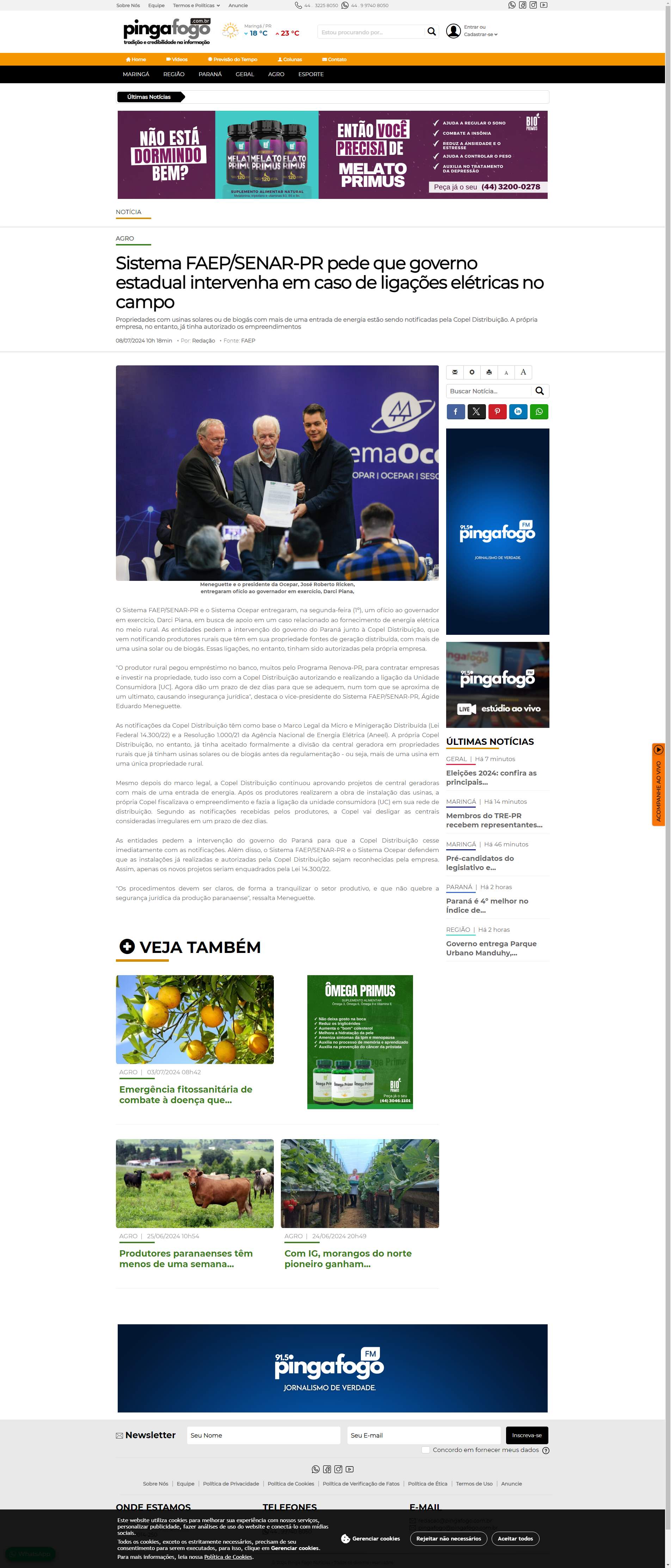 Copel Distribuição autorizando e realizando a ligação da Unidade Consumidora [UC]. Agora dão um prazo de dez dias para que se adequem, num tom que se aproxima de um ultimato, causando insegurança jurídica", destaca o vice-presidente do Sistema FAEP/SENAR-PR, Ágide Eduardo Meneguette.