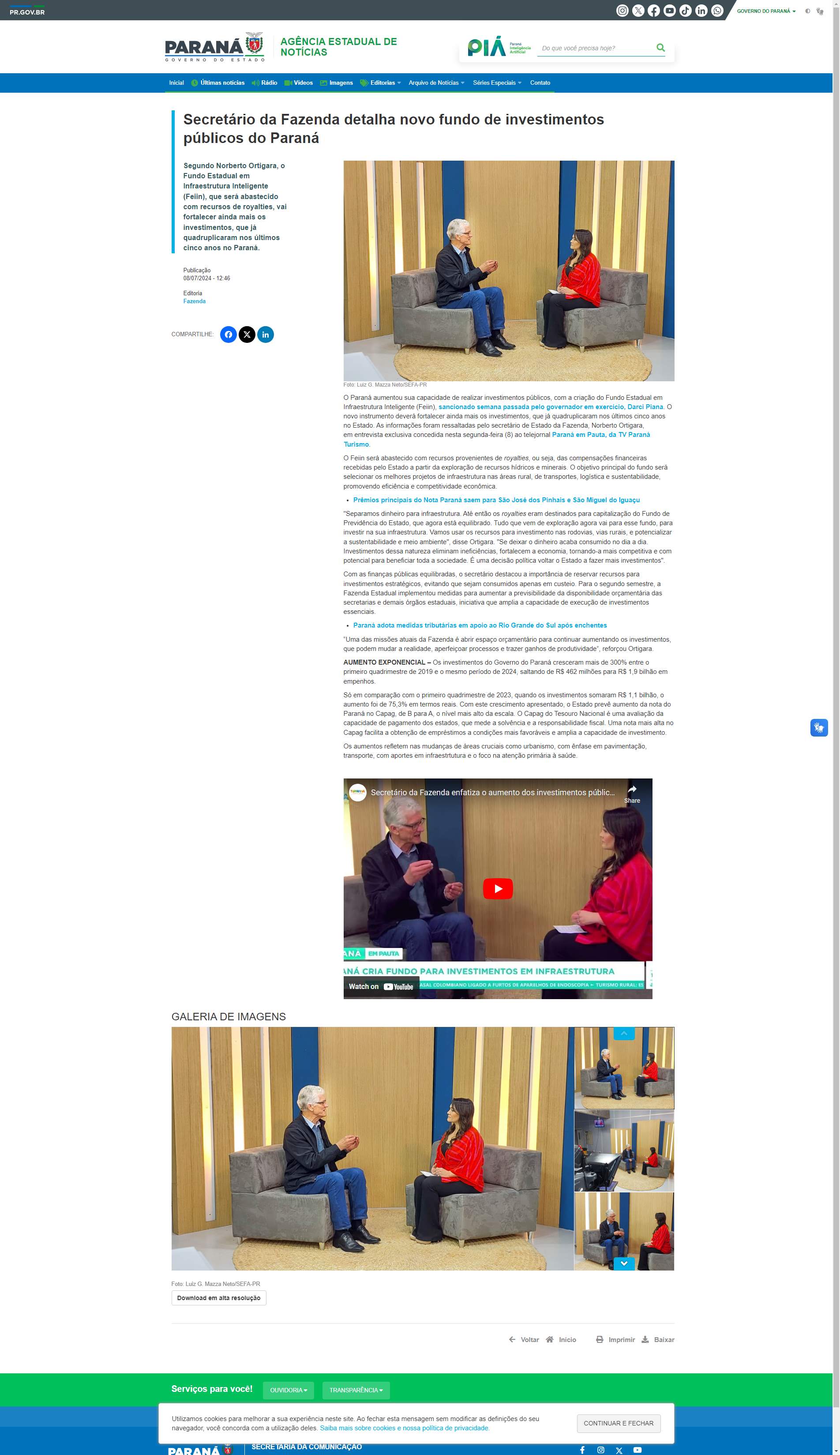 Darci Piana. O novo instrumento deverá fortalecer ainda mais os investimentos, que já quadruplicaram nos últimos cinco anos no Estado. As informações foram ressaltadas pelo secretário de Estado da Fazenda, Norberto Ortigara, em entrevista exclusiva concedida nesta segunda-feira (8) ao telejornal Paraná em Pauta, da