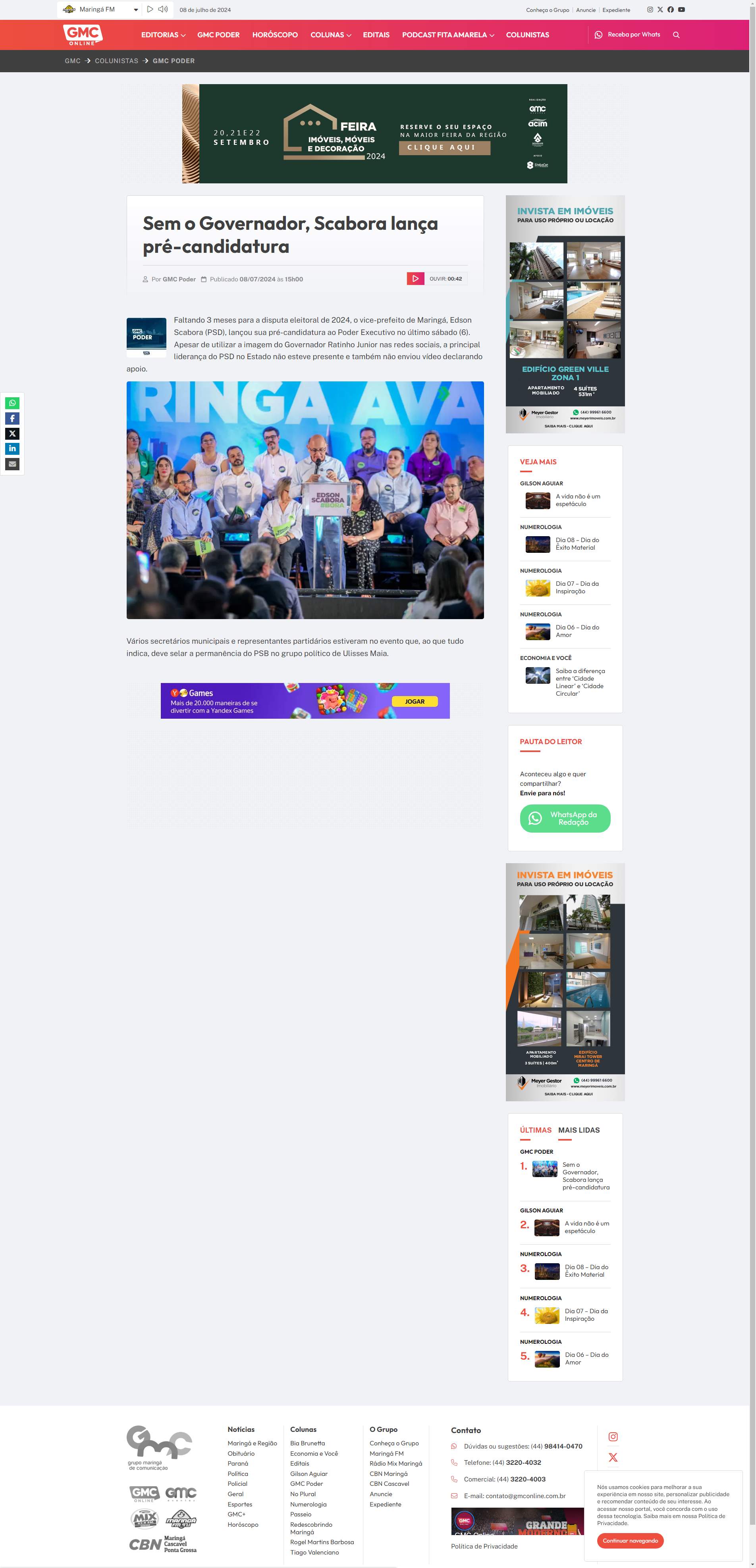 prefeito de Maringá, Edson Scabora (PSD), lançou sua pré-candidatura ao Poder Executivo no último sábado (6). Apesar de utilizar a imagem do Governador