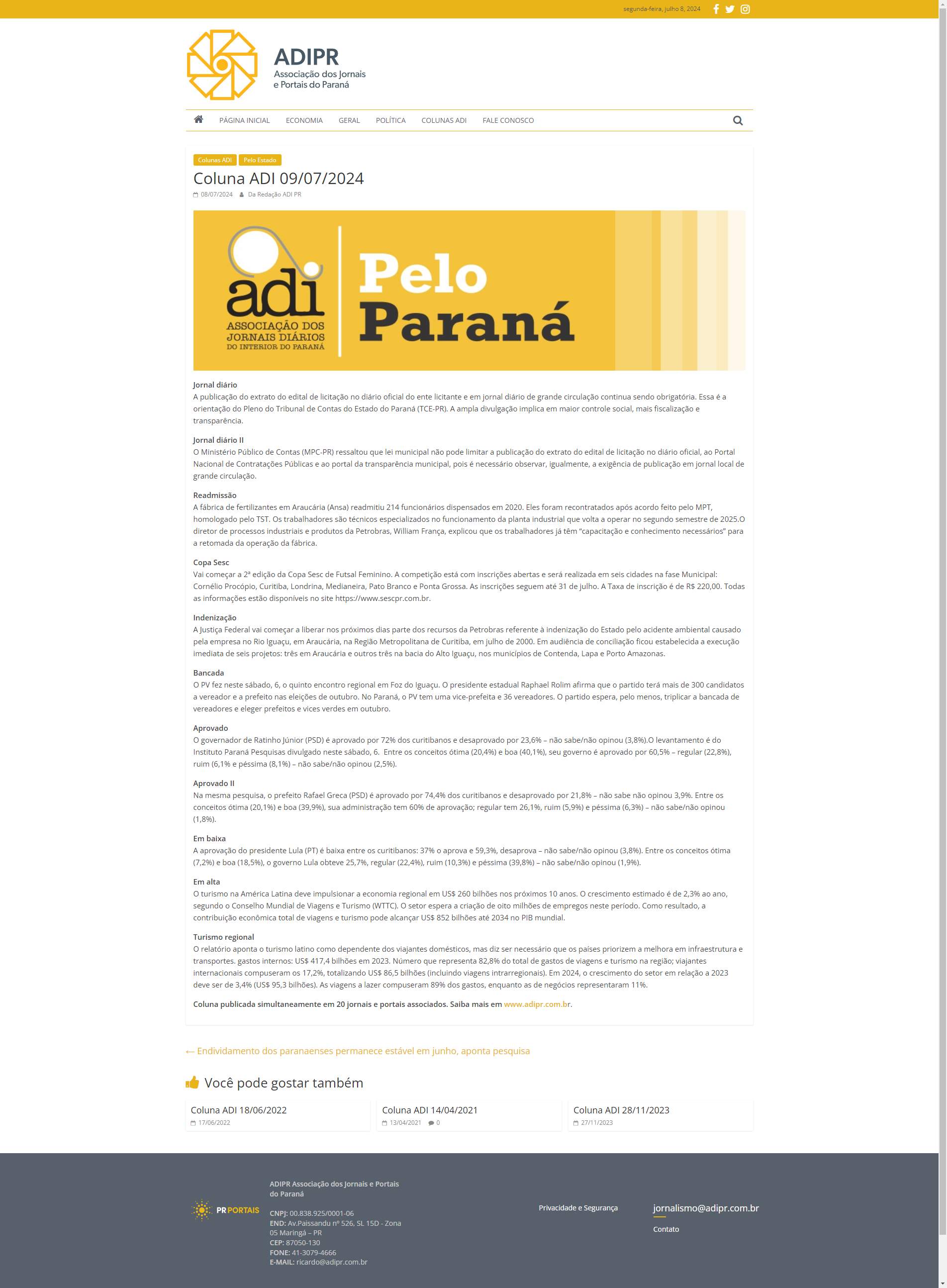 Coluna publicada simultaneamente em 20 jornais e portais associados. Saiba mais em www.adipr.com.br.