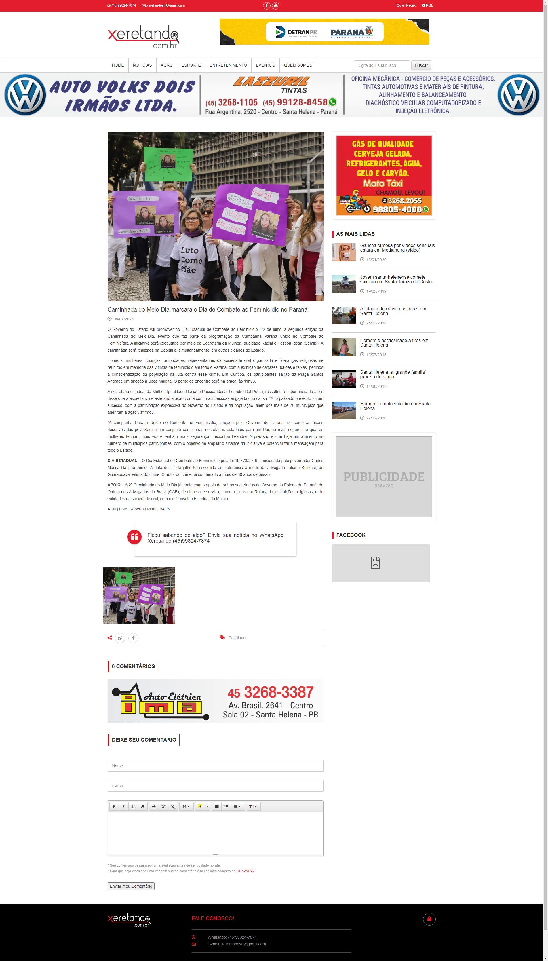 Paraná Unido no Combate ao Feminicídio. A iniciativa será executada por meio da Secretaria da Mulher, Igualdade Racial e Pessoa Idosa (Semipi). A caminhada será realizada na Capital e, simultaneamente, em outras cidades do