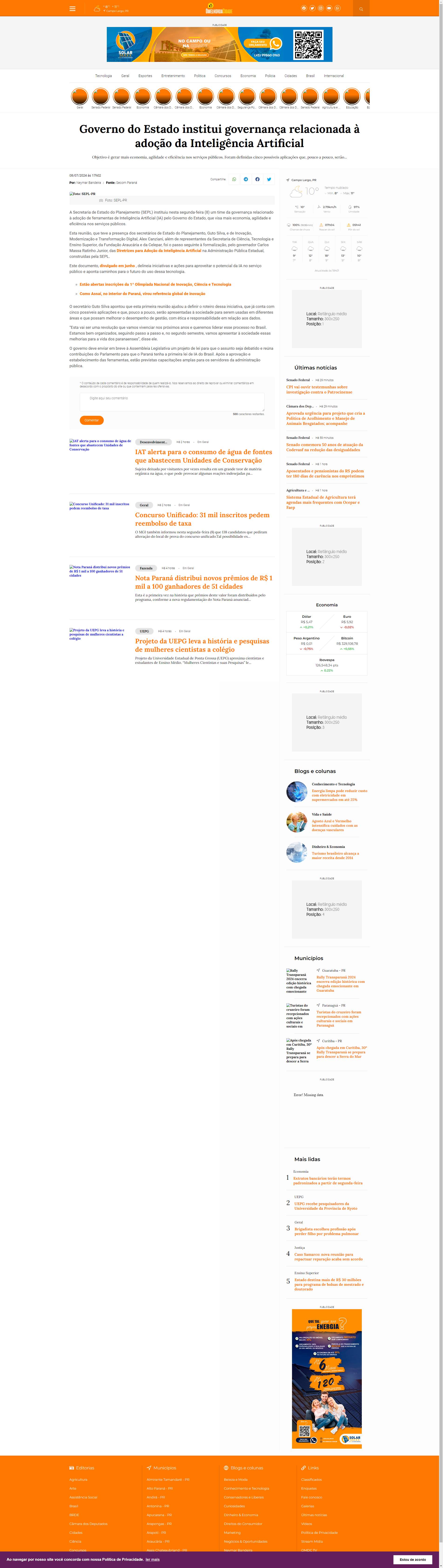 Assembleia Legislativa um projeto de lei para que o assunto seja debatido e reúna contribuições do Parlamento para que o Paraná tenha a primeira lei de IA do Brasil. Após a aprovação e estabelecimento das ferramentas, estão previstas capacitações amplas para os servidores da administração pública.