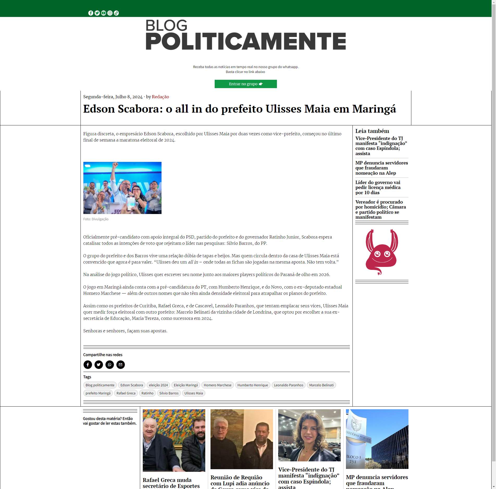 O jogo em Maringá ainda conta com a pré-candidatura do PT, com Humberto Henrique, e do Novo, com o ex-deputado estadual Homero Marchese — além de outros nomes que não têm ainda densidade eleitoral para atrapalhar os planos do