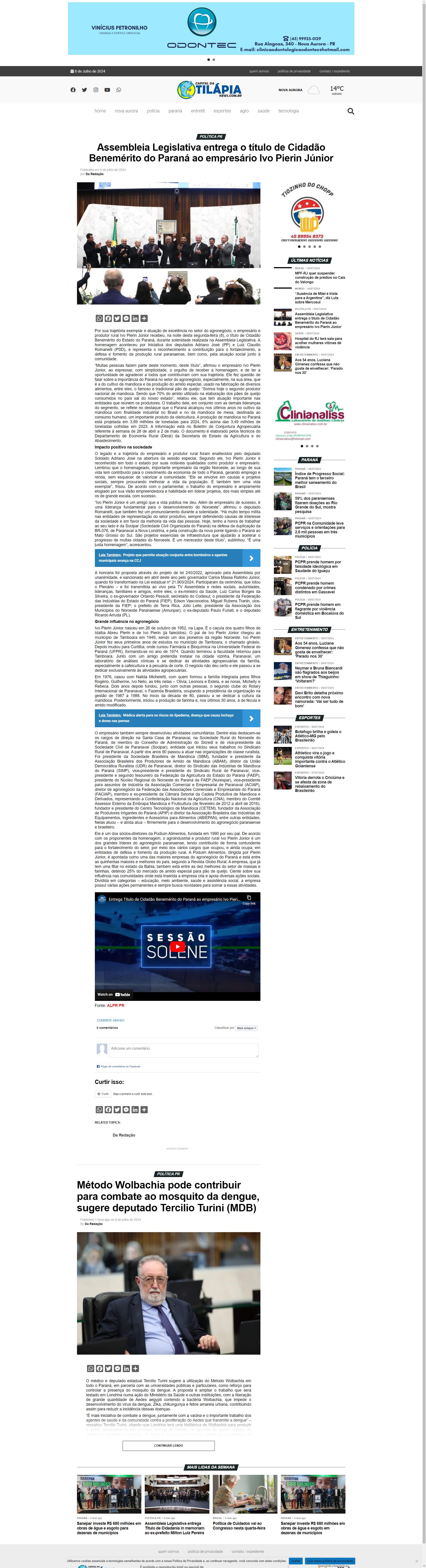 Paraná, gerando emprego e renda, sem esquecer de valorizar a comunidade: “Ele se envolve em causas e projetos sociais, sempre procurando melhorar a vida da população. É também tem uma vida exemplar”, frisou. De acordo com o parlamentar, o trabalho do empresário é amplamente elogiado por sua visão empreendedora e habilidade em liderar projetos, dos mais simples até os de grande escala, com sucesso.