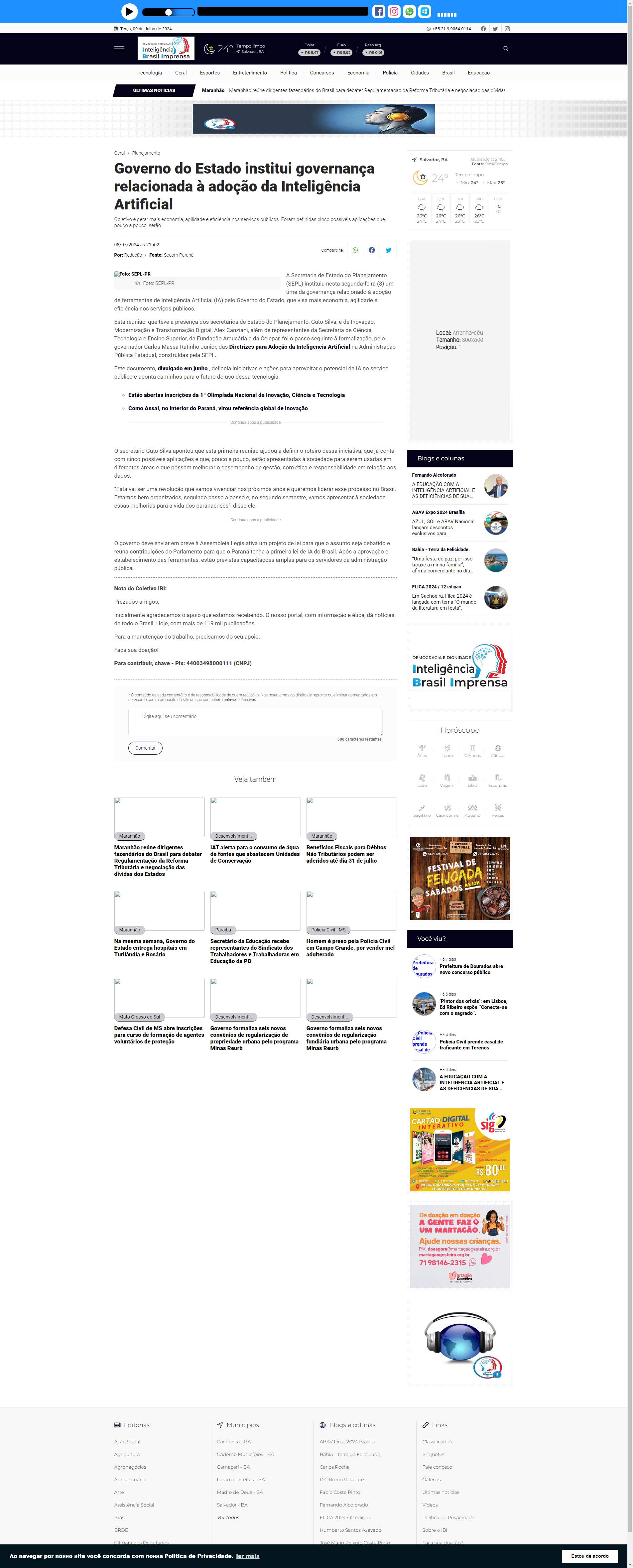 Assembleia Legislativa um projeto de lei para que o assunto seja debatido e reúna contribuições do Parlamento para que o Paraná tenha a primeira lei de IA do Brasil. Após a aprovação e estabelecimento das ferramentas, estão previstas capacitações amplas para os servidores da administração pública.