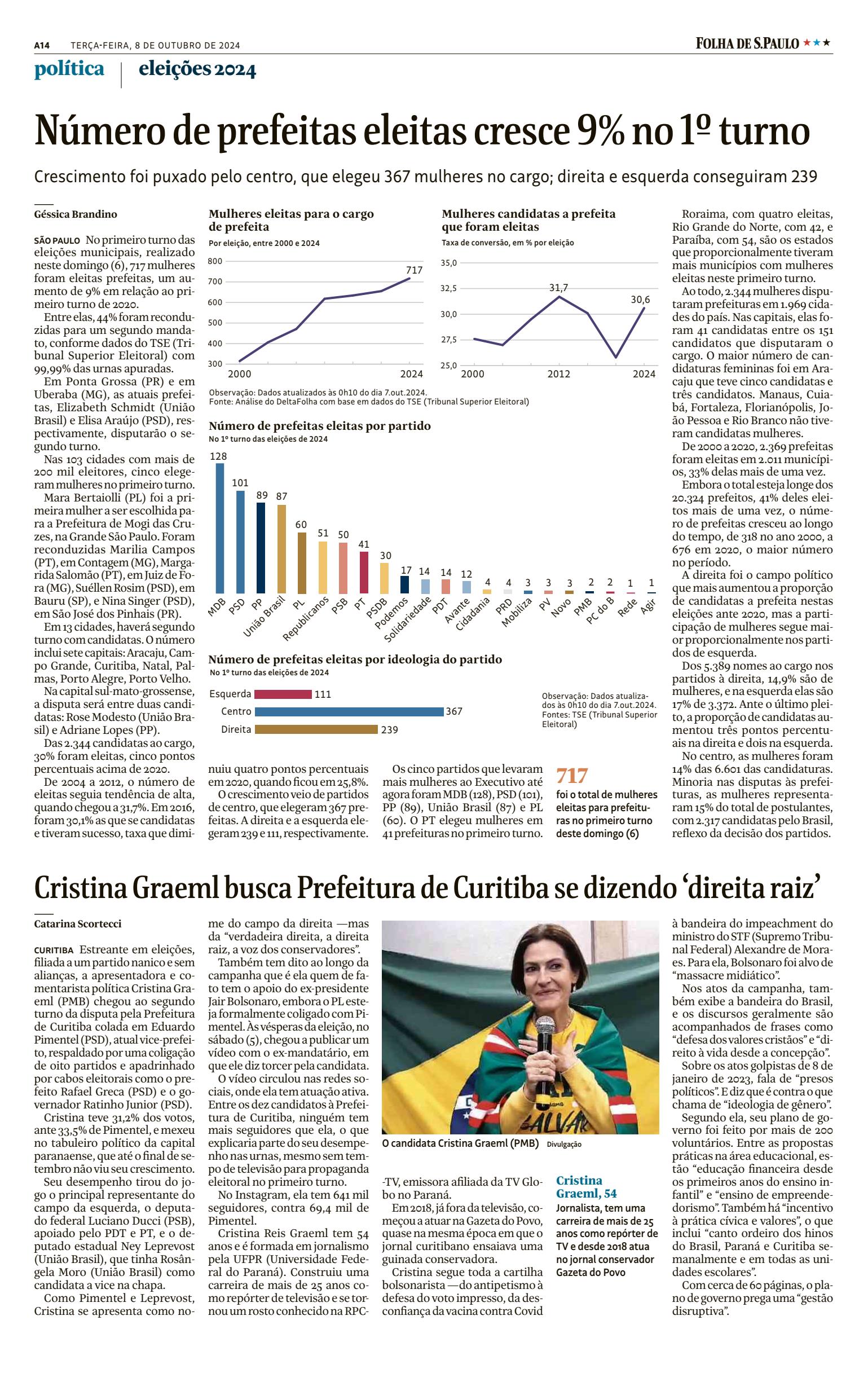 Cristina obteve 31,2% dos votos, ante 33,5% de Pimentel, e mexeu no tabuleiro político da capital paranaense, que até o final de setembro não contava com o crescimento dela.