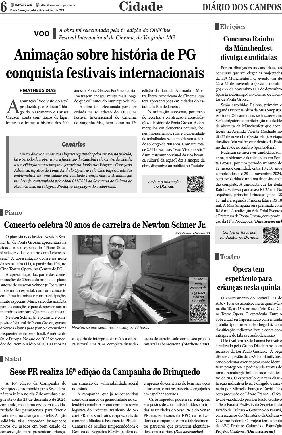 O encerramento do Festival Dia de Arte - 10 anos acontece nesta quinta-feira, dia 10, às 15h, no auditório B do Cine-Teatro Ópera. O espetáculo ‘Entre o Sol e a Lua’, será apresentado com entrada gratuita (por ordem de chegada), com classificação indicativa livre e conta com intérprete de Libras e audiodescrição. O festival tem o Selo Paraná Festivais e é realizado pelo Grupo Dia de Arte, com recursos da Lei Paulo Gustavo. A peça discute a questão do assédio infantil, buscando orientar as crianças a como identificar, proteger-se e pedir ajuda através de uma dramaturgia influenciada pelo teatro de rua. O espetáculo, que tem classificação indicativa livre, é dirigido e encenado por Michella França e David Dias com produção de Lázaro França. O festival é viabilizado pela Lei Paulo Gustavo – Selo Paraná Festivais, da Secretaria do Estado de Cultura – Governo do Paraná, com recursos do Ministério da Cultura – Governo Federal. O projeto tem o apoio da ABC Projetos Culturais e Estratégia Projetos Criativos. (Das assessorias)