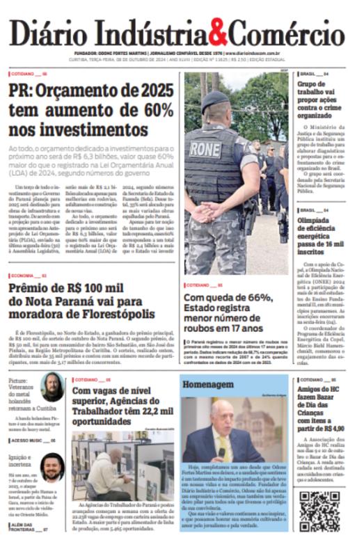 O Paraná registrou o menor número de roubos nos primeiros oito meses de 2024 dos últimos 17 anos para o período. Dados indicam redução de 66,7% na comparação com o mesmo recorte de 2007 e de 24% quando confrontados os dados de 2024 com os de 2023.COTIDIANO ___ 05