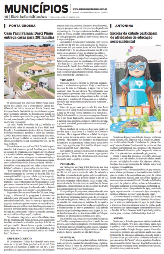 Monitores do programa Estação Sanepar visitaram nesta semana, pela primeira vez, a cidade de Antonina, no Litoral do Estado. Estudantes do pré-escolar ao 5º ano do Ensino Fundamental de quatro escolas públicas participaram das atividades de educação socioambiental oferecidas pela Companhia, entre os dias 1.º e 4 de outubro, envolvendo 367 pessoas. Desde o início dos trabalhos, em 2023, a Estação já passou por 108 cidades, levando atividades a mais de 200 instituições de ensino. Em algumas cidades, também houve apresentações da Estação em praças e espaços comunitários. Nesse período, já foram atendidas 46.513 pessoas, entre alunos, professores e funcionários das instituições de ensino e da comunidade em geral. As visitas levam propostas lúdicas, com conteúdos ligados ao saneamento e à sustentabilidade. Eles são trabalhados por meio de palestra, vídeo, música e brincadeiras, buscando estimular a conscientização ambiental, especialmente sobre a importância da água, o ciclo da água, os processos de tratamento da água e do esgoto, resíduos sólidos e a preservação da mata ciliar. A Mascote Sane é a estrela da Estação. Ela é uma das personagens do jogo virtual chamado ‘Bora Sanepar’, e anima os participantes. O jogo, no qual a Sane é a heroína, trata dos mesmos temas da visita e pode ser um modo de aprendizagem e entretenimento para a família. O ‘Bora Sanepar’ está disponível gratuitamente para celulares e tablets do tipo Android. AGENDA Neste ano, a Estação percorreu várias cidades do Interior do Estado. “Foi uma experiência muito rica e positiva, tendo sempre um retorno muito bom das escolas por onde a Estação Sanepar passou. Pretendemos, para o próximo ano, aprimorar ainda mais essa ferramenta de educação ambiental, levando tanto a Mascote Sane quanto outras atividades educativas para as escolas do Paraná”, afirma a gestora de educação socioambiental da Sanepar, Roselis Presznhuk. A equipe agora se prepara para o atendimento no Litoral, durante a temporada de verão.