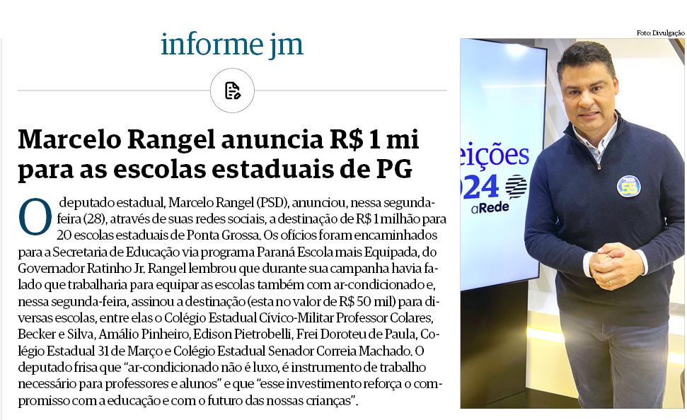 Informa JM - Marcelo Rangel anuncia R$ 1 mi para as escolas estaduais de PG