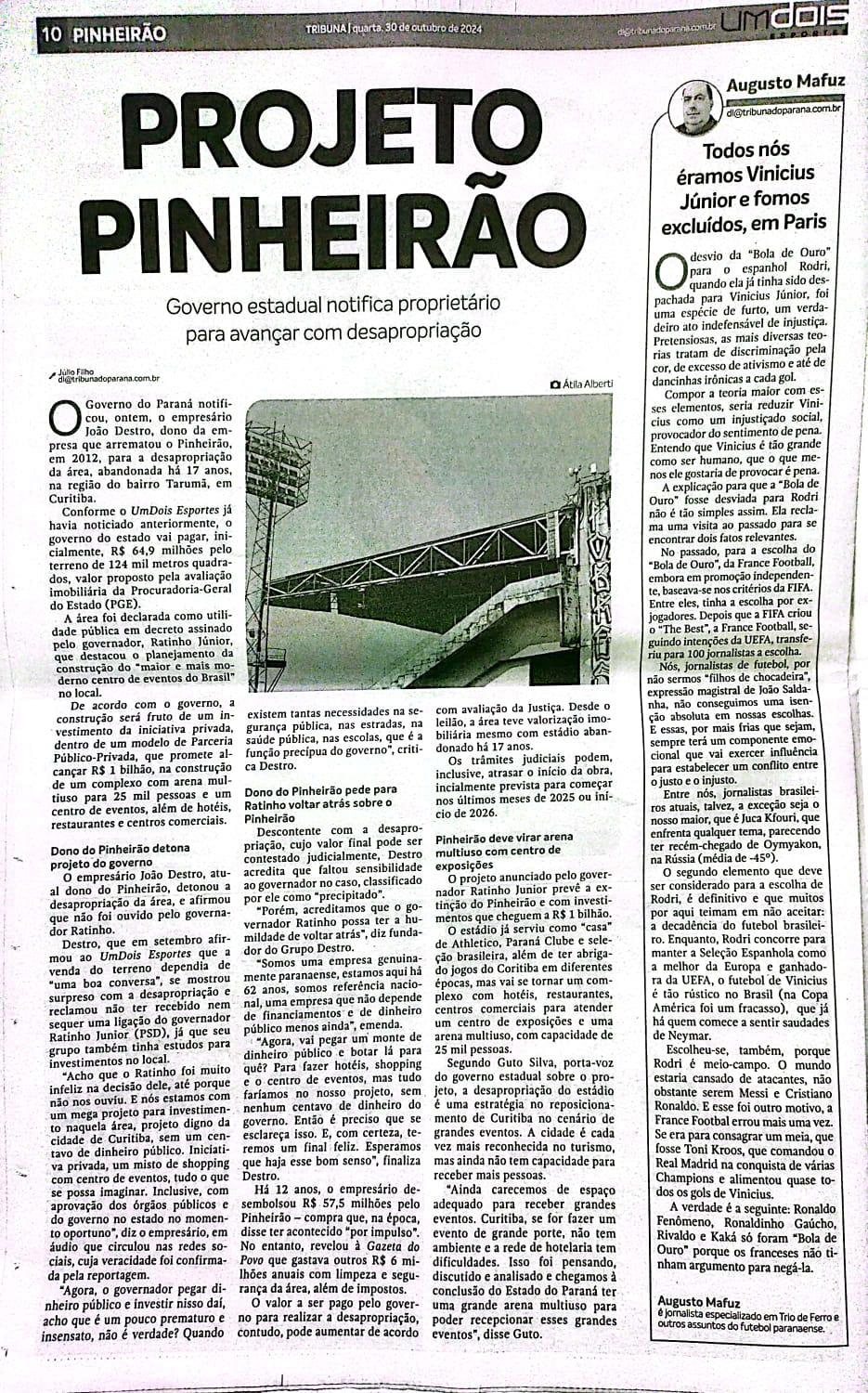 O empresário João Destro, atual dono do Pinheirão, detonou a desapropriação da área, e afirmou que não foi ouvido pelo