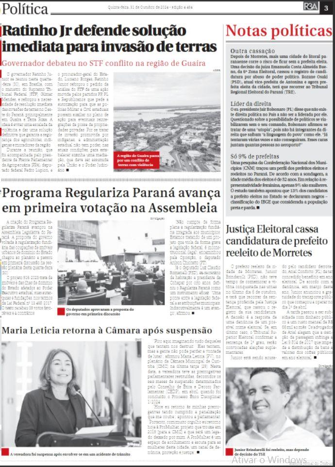 O governador Ratinho Junior se reuniu nesta quarta- -teira (30), em Brasília, com o ministro do Supremo Tribunal Federal (STF) Gilmar Mendes, e reforçou a necessidade de resolução imediata das invasões deterras no Oeste do Paraná, principalmente em Guaíra e Terra Roxa. A ideia é evitar uma escalada da violência e dar uma solução definitiva que garanta a segurança dos agricultores, indigenas e moradores da região. Durante a reunião, que foi acompanhada pelo presidente da Frente Parlamentar da Agropecuária (FPA), deputado federal Pedro Lupion, e o procurador-geral do Estado, Luciano Borges, Ratinho Junior reforçou o pedido da análise do STF de uma ação movida pelos partidos PP PL é Republicanos que pede a autorização para que as polícias Militar e Civil estaduais possam auxiliar no plano de ação para eventuais reintegrações de posse de propriedades privadas. Por se tratar de invasão promovida por indígenas, a administração estadual não tem poder, nas atuais condições, para estabelecer sozinha uma mediação, que deve ser assumida pela União e o Poder Judiciário.