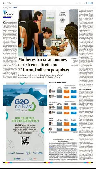 — As mulheres têm rejeitado a violência que a extrema direita apresenta como solução para os problemas. Por isso, optaram por candidatos da direita tradicional nestas três cidades e por programas que combatam esse extremismo — conclui o cientista político Josué Medeiros, da Universidade Federal do Rio de Janeiro (UFRJ).