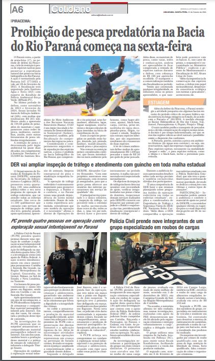 O Paraná entra, a partir de sexta-feira (1º), no período de defeso da Piracema, ciclo de restrição à pesca de espécies nativas para preservar a reprodução natural dos peixes na bacia hidrográfica do Rio Paraná. A ação é normatizada pela Portaria IAT 377/2022 e vale até 28 de fevereiro de 2025. A fiscalização será organizada pelo Instituto Água e Terra (IAT) com suporte do Batalhão de Polícia Ambiental-Força Verde (BPAmb-FV). No último período de defeso, entre novembro de 2023 e fevereiro de 2024, foram lavrados 92 Autos de Infração Ambiental (AIA), com multas que totalizaram R$ 265 mil. Houve ainda a apreensão de 194,68 quilos de peixe, além de materiais e equipamentos como redes de pesca, molinetes, carretilhas, anzóis, entre outras ferramentas de pesca utilizadas irregularmente. A restrição de pesca é determinada pelo órgão ambiental há quase duas décadas, em cumprimento à Instrução Normativa nº 25/2009 do Instituto Brasileiro do Meio Ambiente e dos Recursos Naturais Renováveis (Ibama). O IAT é um órgão vinculado à Secretaria do Desenvolvimento Sustentável (Sedest), responsável, também, pela fiscalização do cumprimento das regras na pesca. Considerando o comportamento migratório e de reprodução das espécies nativas, a pesca é proibida na bacia hidrográfica do Rio Paraná, que compreende o rio principal, seus formadores, afluentes, lagos, lagoas marginais, reservatórios e demais coleções de água inseridas na bacia de contribuição do rio. Entre as espécies protegidas no período estão bagre, dourado, jaú, pintado, lambari, mandi-amarelo, mandi-prata e piracanjuva Não entram na restrição peixes considerados exóticos, que foram introduzidos no meio ambiente pelo homem, como bagre-africano, apaiari, black-bass, carpa, corvina, peixe-rei, sardinha-de-água-doce, piranha-preta, tilápia, tucunaré e zoiudo. Também não entram espécies híbridas, que são organismos resultantes do cruzamento de duas espécies. A lei de crimes ambientais define multas de aproximadamente R$ 1.200 por pescador e mais de R$ 20 por quilo de peixe pescado. Além disso, os materiais de pesca, como varas, redes e embarcações, podem ser apreendidos se ficar comprovada a retirada de espécies nativas durante o defeso, com cobrança de R$ 100 por apetrecho recolhido. O transporte e a comercialização também são fiscalizados no período. “Assim que constatada qualquer irregularidade, os infratores terão os peixes apreendidos, o que também pode acontecer com os barcos. E, nos casos de prisão, o responsável é encaminhado ao Ministério Público”, explicou o gerente de Monitoramento e Fiscalização do IAT, Álvaro César de Goes. “Além da importância da conservação das espécies nativas, o defeso tem papel socioambiental, despertando consciência ecológica nos turistas e pescadores”, acrescentou ele.