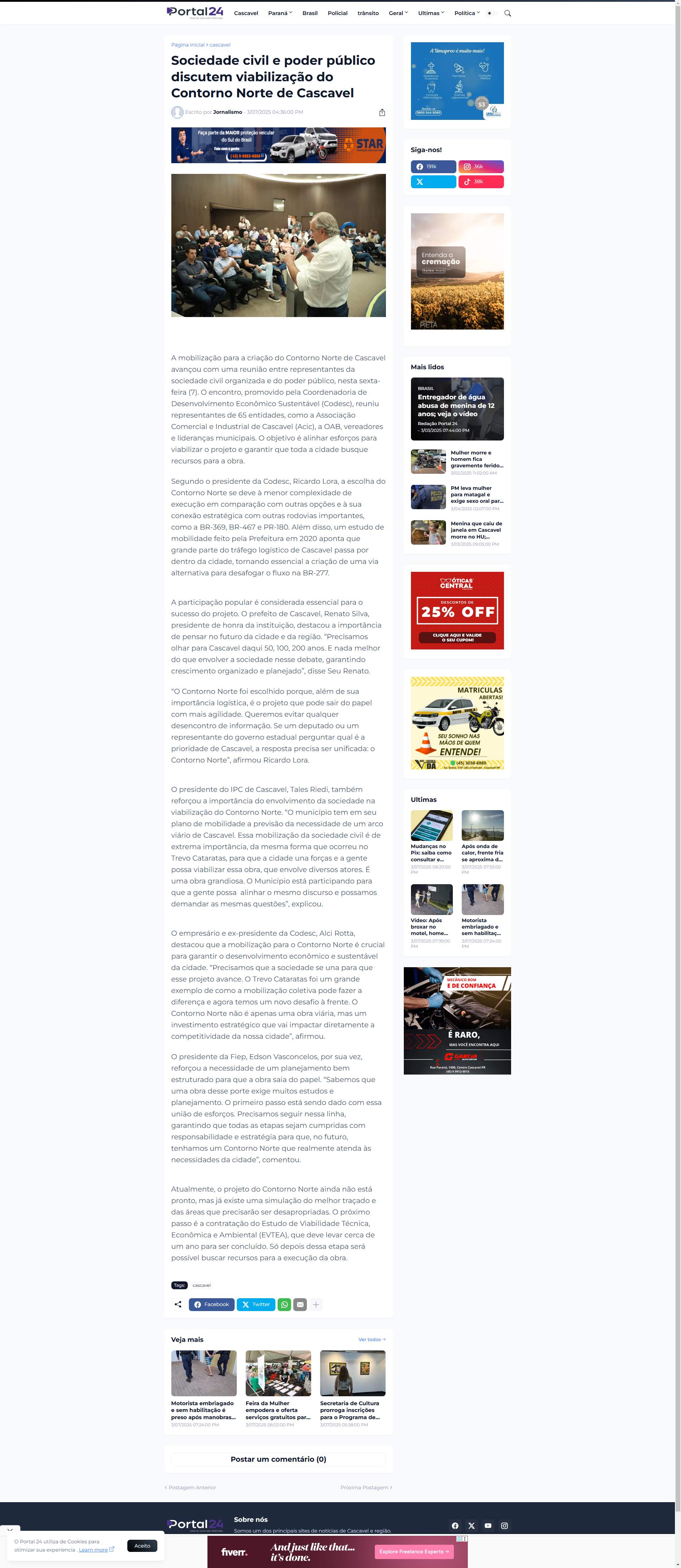 O empresário e ex-presidente da Codesc, Alci Rotta, destacou que a mobilização para o Contorno Norte é crucial para garantir o desenvolvimento econômico e sustentável da cidade. “Precisamos que a sociedade se una para que esse projeto avance. O Trevo Cataratas foi um grande exemplo de como a mobilização coletiva pode fazer a diferença e agora temos um novo desafio à frente. O Contorno Norte não é apenas uma obra viária, mas um investimento estratégico que vai impactar diretamente a competitividade da nossa cidade”, afirmou.