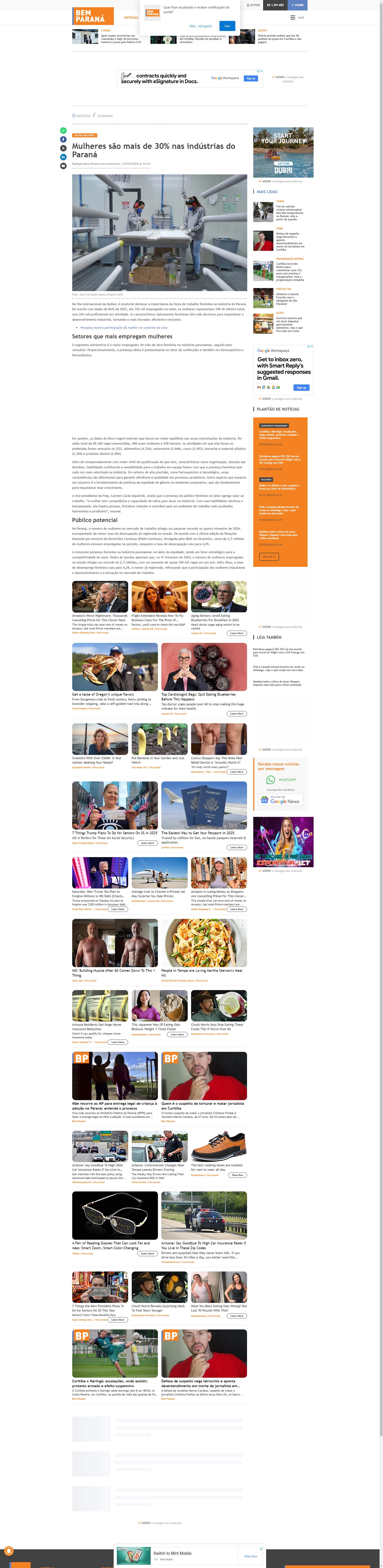 Paraná. De acordo com dados da RAIS de 2023, dos 722 mil empregados no setor, as mulheres representam 34% do efetivo total, com 245 mil profissionais em atividade. As características tipicamente femininas têm sido decisivas para impulsionar o desenvolvimento industrial, tornando-o mais inovador, eficiente e inclusivo.