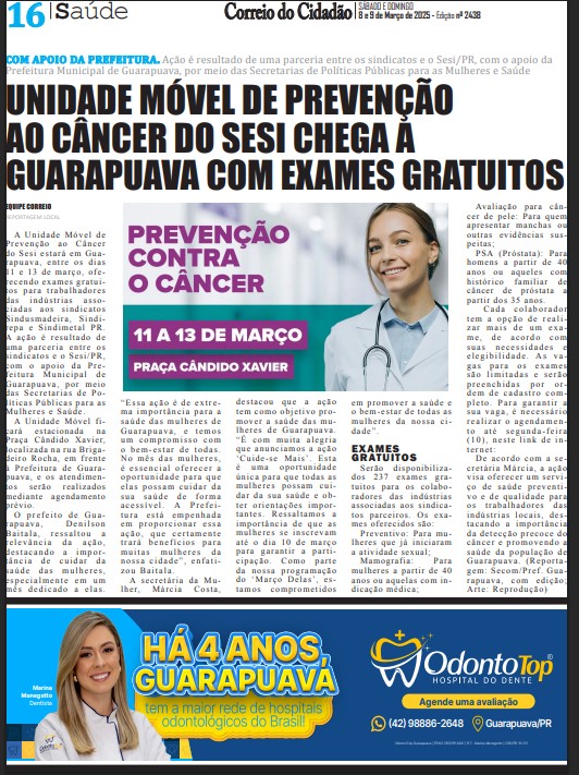 “Essa ação é de extrema importância para a saúde das mulheres de Guarapuava, e temos um compromisso com o bem-estar de todas. No mês das mulheres, é essencial oferecer a oportunidade para que elas possam cuidar da sua saúde de forma acessível. A Prefeitura está empenhada em proporcionar essa ação, que certamente trará benefícios para muitas mulheres da nossa cidade”, enfatizou Baitala.
