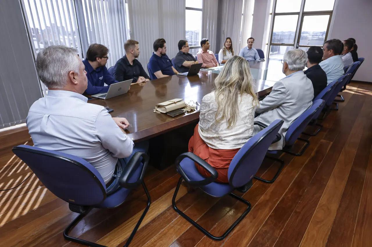 Senai Paraná, Fabiane Franciscone, e pelo gerente sênior de tecnologia, Fabiano Scheer Hainosz. Também participaram do encontro secretários municipais, o presidente da Associação das Empresas da Cidade Industrial de