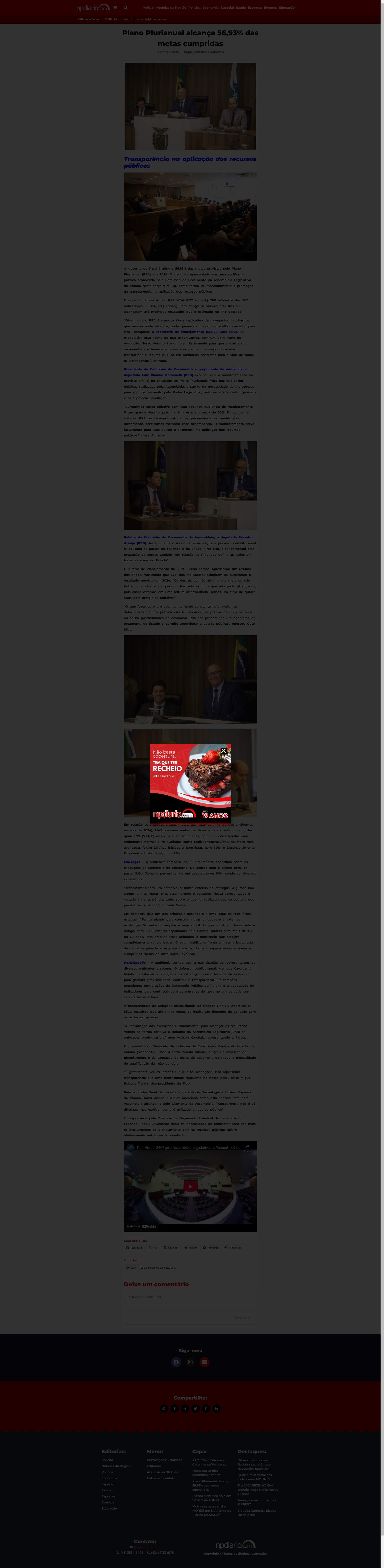Paraná atingiu 56,93% das metas previstas pelo Plano Plurianual (PPA) em 2024. O dado foi apresentado em uma audiência pública promovida pela Comissão de Orçamento da Assembleia Legislativa do