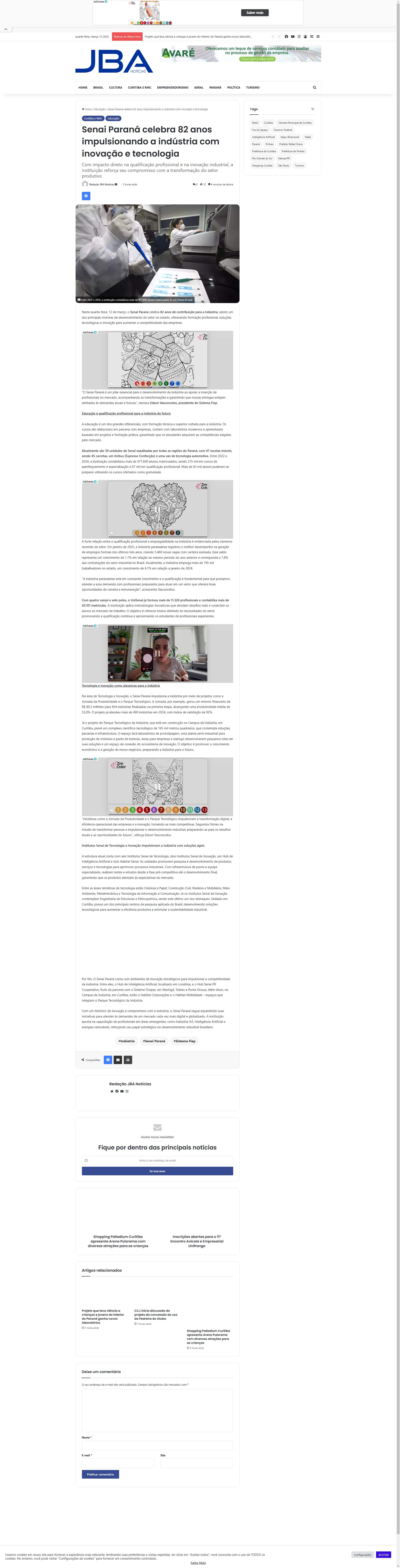 Senai Paraná celebra 82 anos de contribuição para a indústria, sendo um dos principais motores de desenvolvimento do setor no estado, oferecendo formação profissional, soluções tecnológicas e inovação para aumentar a competitividade das empresas.