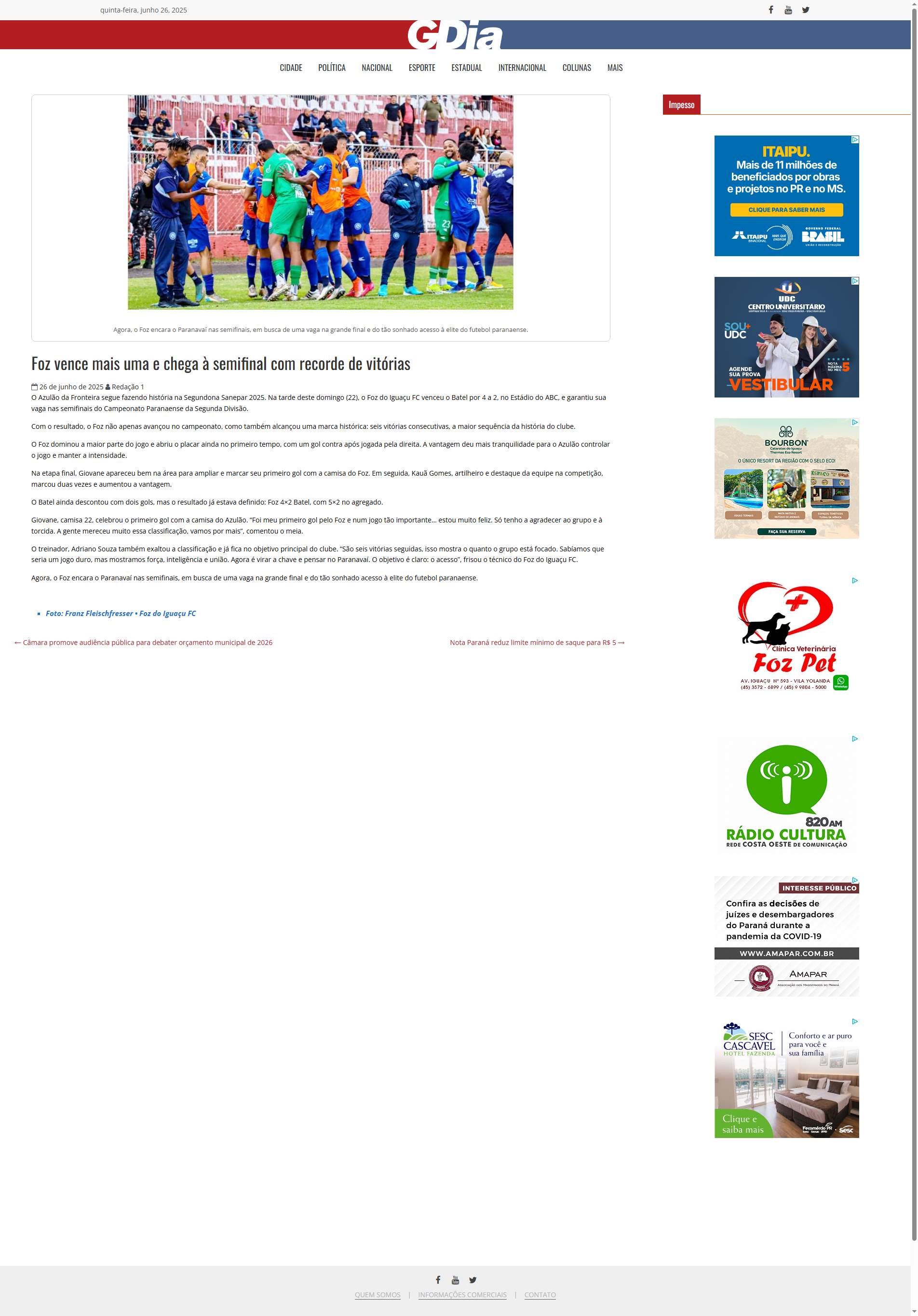 Sanepar 2025. Na tarde deste domingo (22), o Foz do Iguaçu FC venceu o Batel por 4 a 2, no Estádio do ABC, e garantiu sua vaga nas semifinais do Campeonato Paranaense da Segunda Divisão.