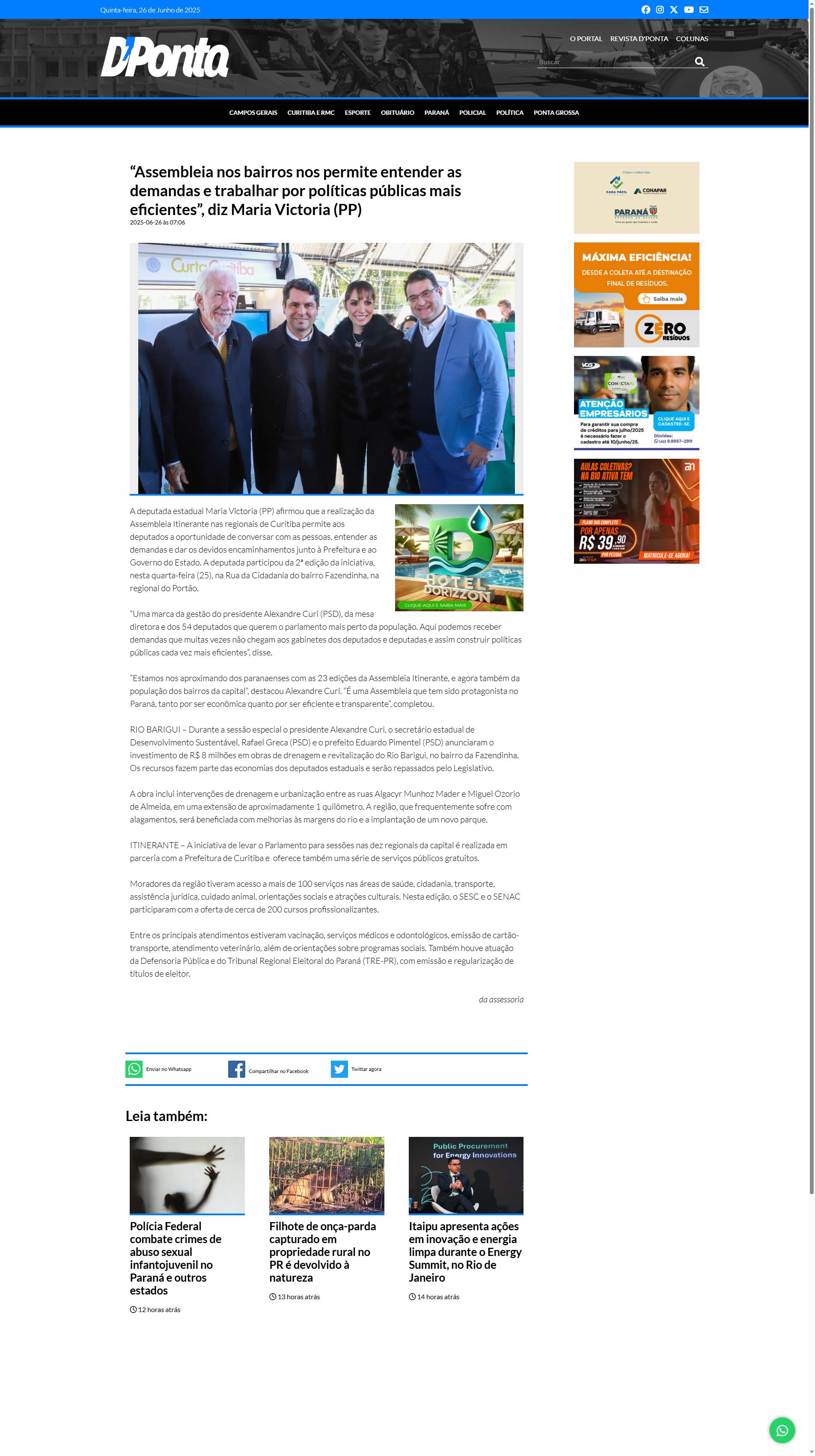 “Estamos nos aproximando dos paranaenses com as 23 edições da Assembleia Itinerante, e agora também da população dos bairros da capital”, destacou