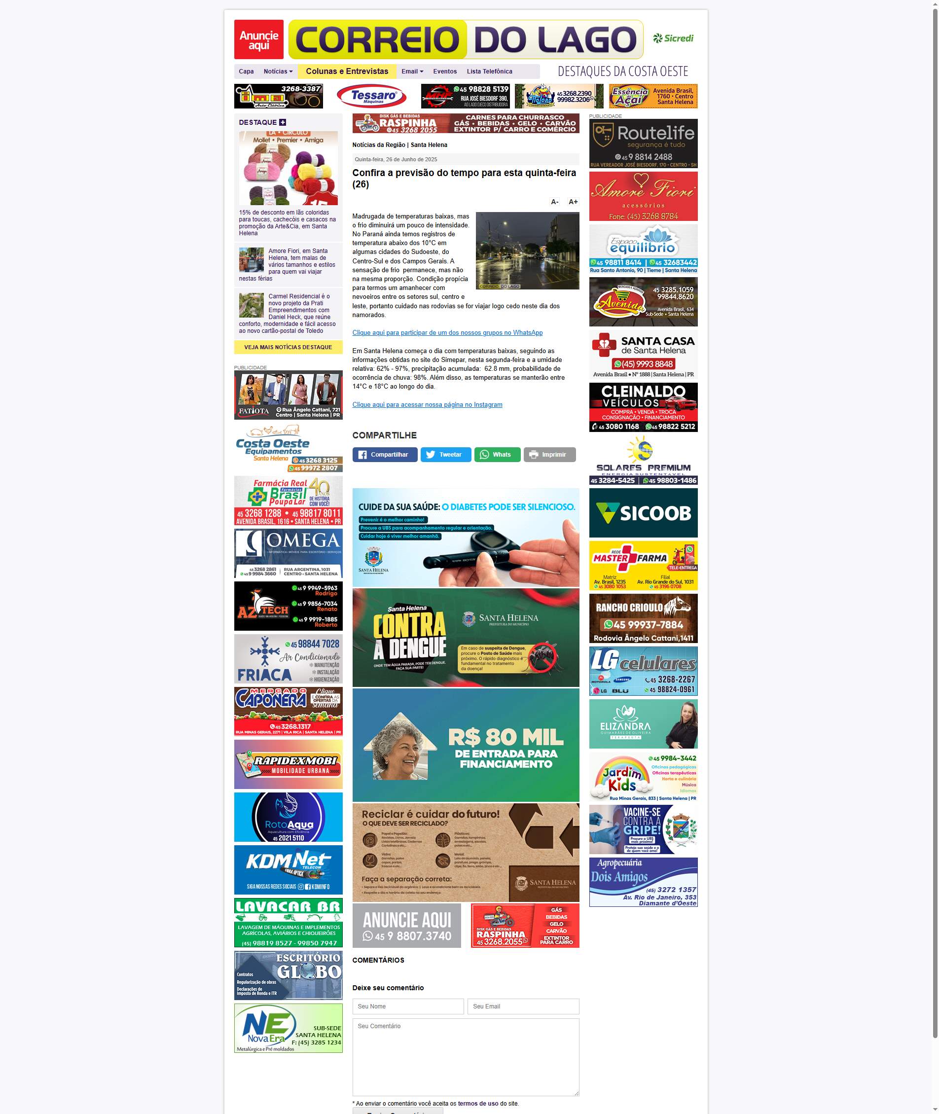 Em Santa Helena começa o dia com temperaturas baixas, seguindo as informações obtidas no site do