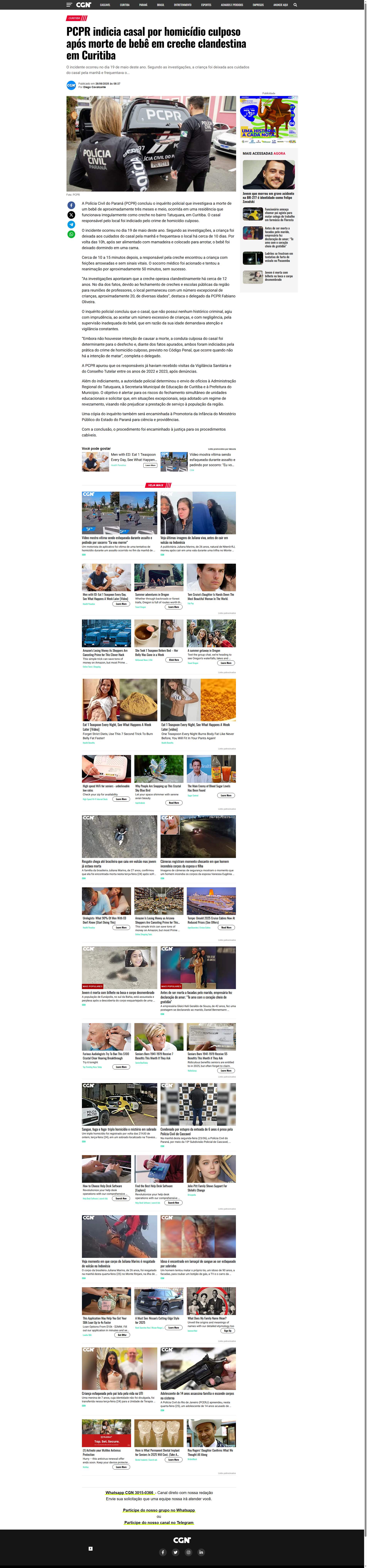 Polícia Civil do Paraná (PCPR) concluiu o inquérito policial que investigava a morte de um bebê de aproximadamente três meses e meio, ocorrida em uma residência que funcionava irregularmente como creche no bairro Tatuquara, em Curitiba. O casal responsável pelo local foi indiciado pelo crime de homicídio culposo.