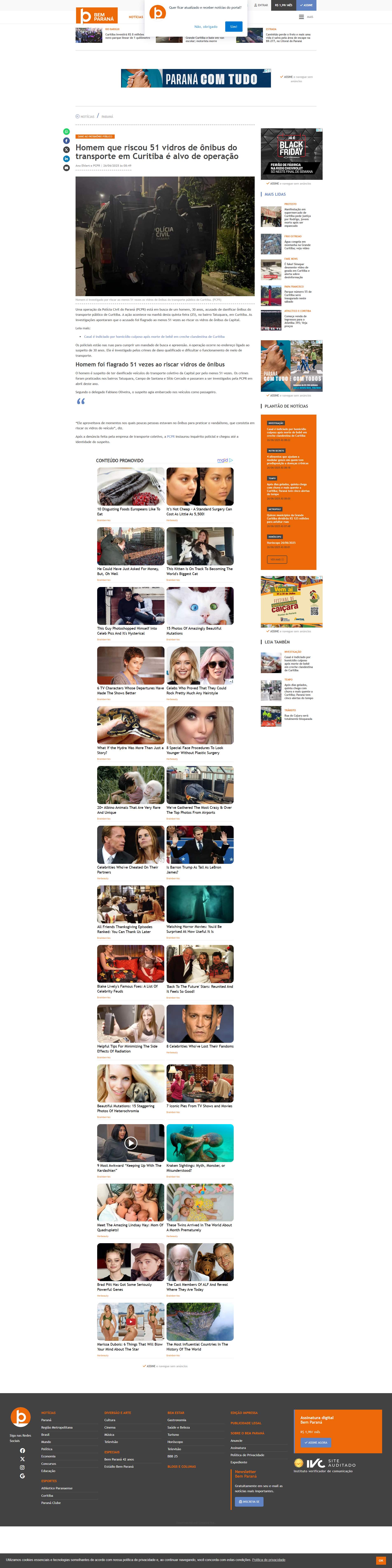 (PCPR) está em busca de um homem, 30 anos, acusado de danificar ônibus do transporte público de Curitiba. A ação acontece na manhã desta quinta-feira (25), no bairro Tatuquara, em Curitiba. As investigações apontaram que o acusado foi flagrado ao menos 51 vezes ao riscar os vidros de ônibus da Capital.