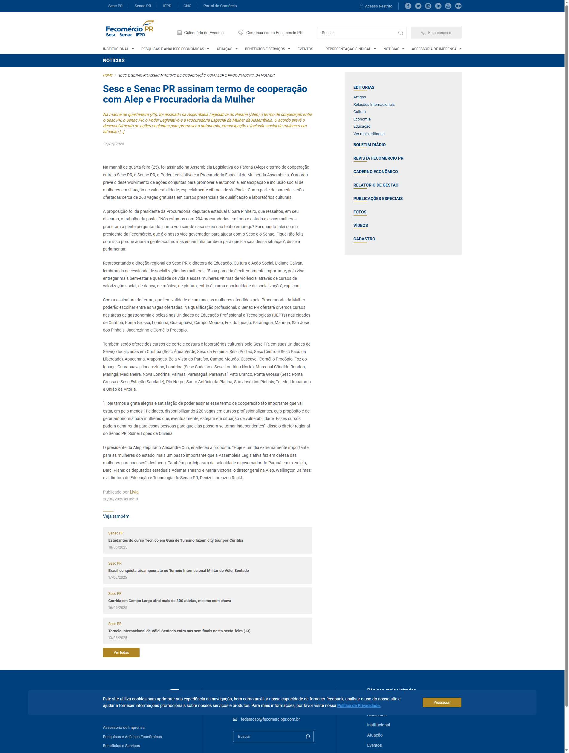 Home / Sesc e Senac PR assinam termo de cooperação com Alep e Procuradoria da Mulher
