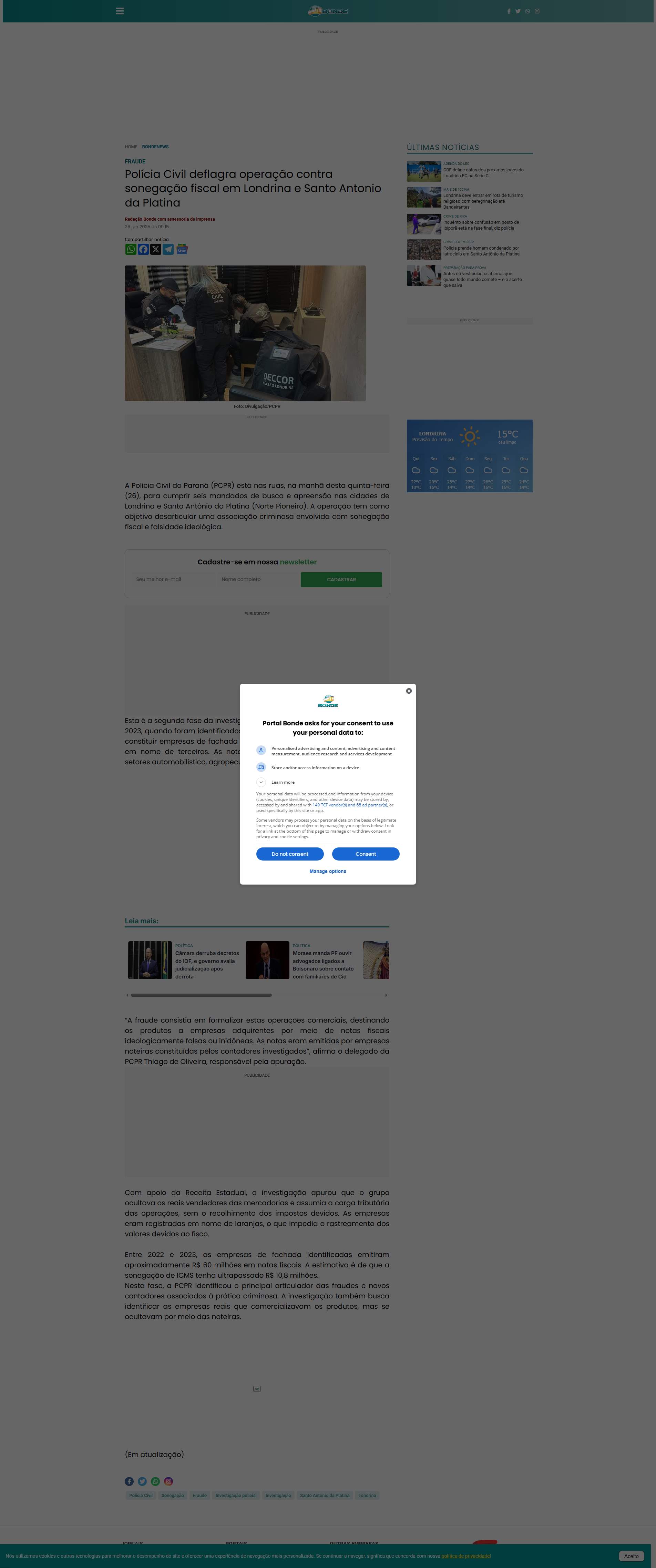 Esta é a segunda fase da investigação. A primeira ocorreu em dezembro de 2023, quando foram identificados contadores de Londrina responsáveis por constituir empresas de fachada utilizadas para a emissão de notas fiscais em nome de terceiros. As notas simulavam a venda de produtos dos setores automobilístico, agropecuário, madeireiro e de utilidades.
