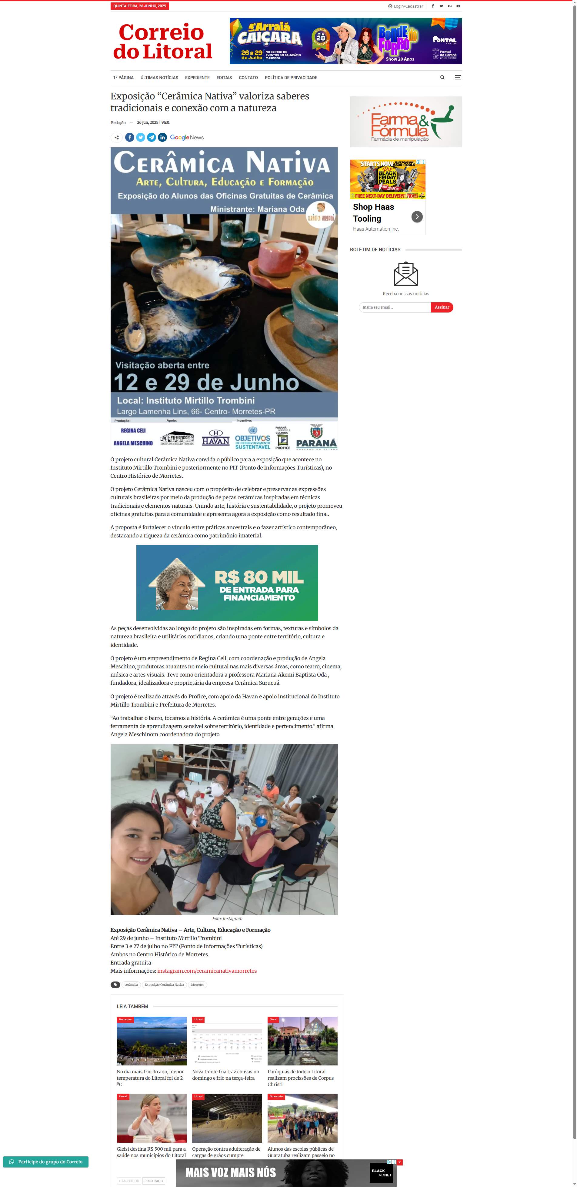 O projeto cultural Cerâmica Nativa convida o público para a exposição que acontece no Instituto Mirtillo Trombini e posteriormente no PIT (Ponto de Informações Turísticas), no Centro Histórico de Morretes.