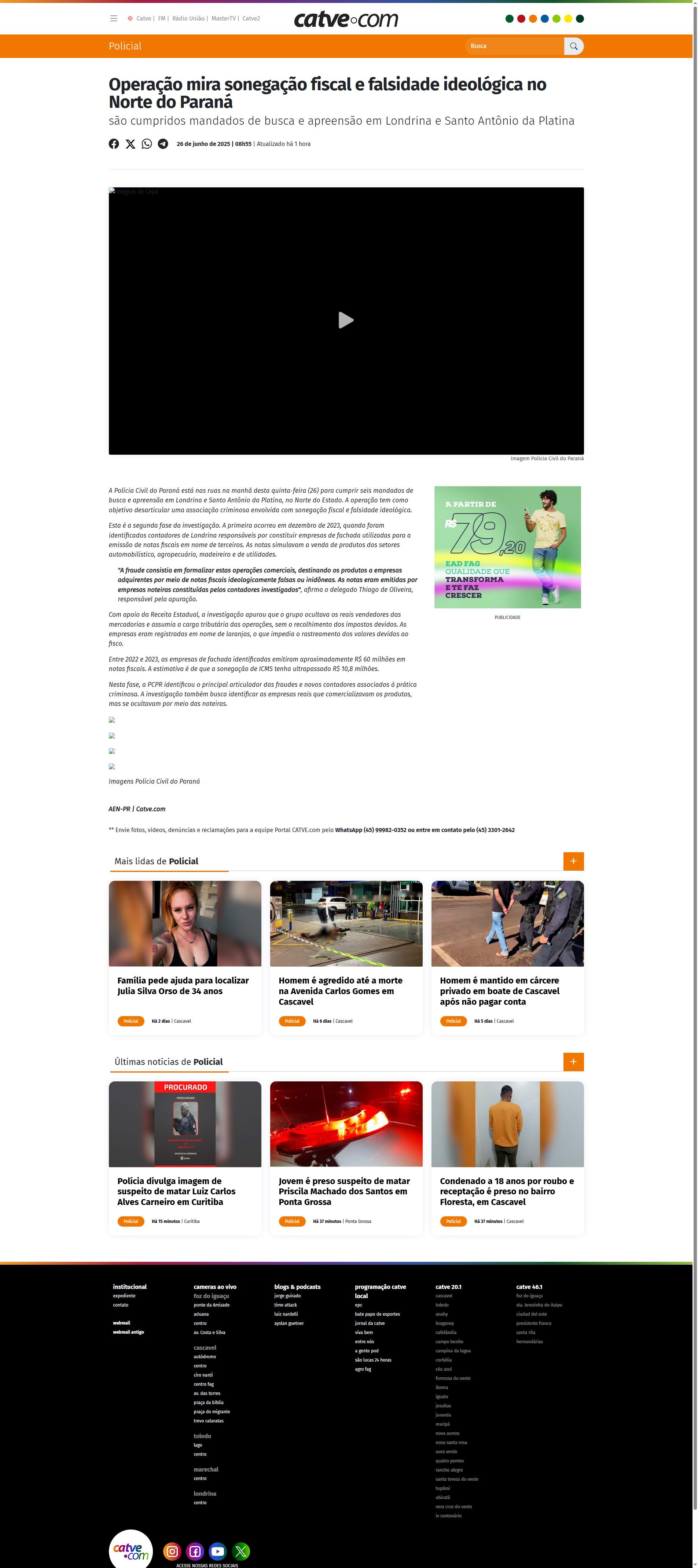 Esta é a segunda fase da investigação. A primeira ocorreu em dezembro de 2023, quando foram identificados contadores de Londrina responsáveis por constituir empresas de fachada utilizadas para a emissão de notas fiscais em nome de terceiros. As notas simulavam a venda de produtos dos setores automobilístico, agropecuário, madeireiro e de utilidades.