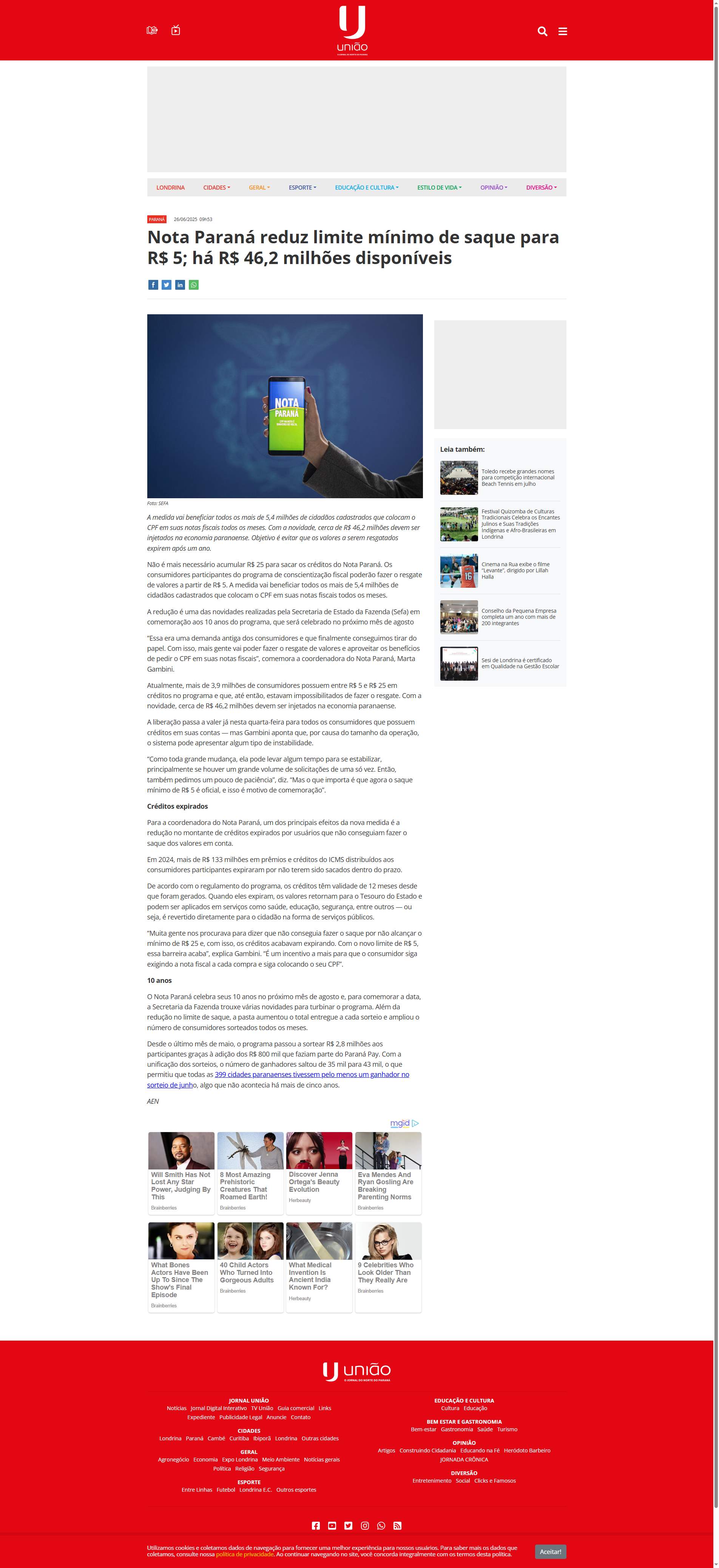 Nota Paraná. Os consumidores participantes do programa de conscientização fiscal poderão fazer o resgate de valores a partir de R$ 5. A medida vai beneficiar todos os mais de 5,4 milhões de cidadãos cadastrados que colocam o CPF em suas notas fiscais todos os meses.
