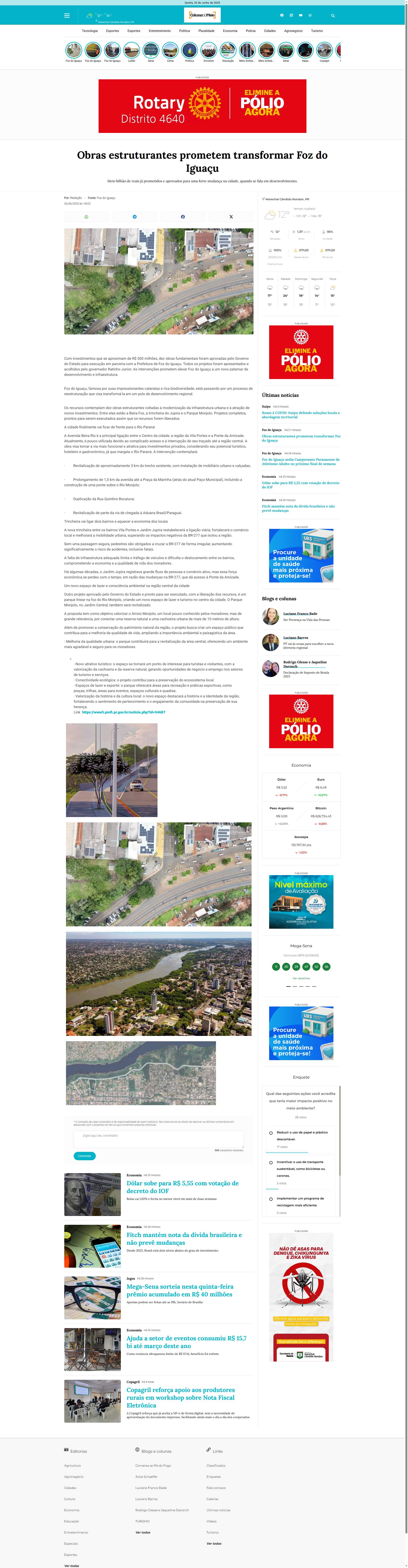 governador Ratinho Junior. As intervenções prometem elevar Foz do