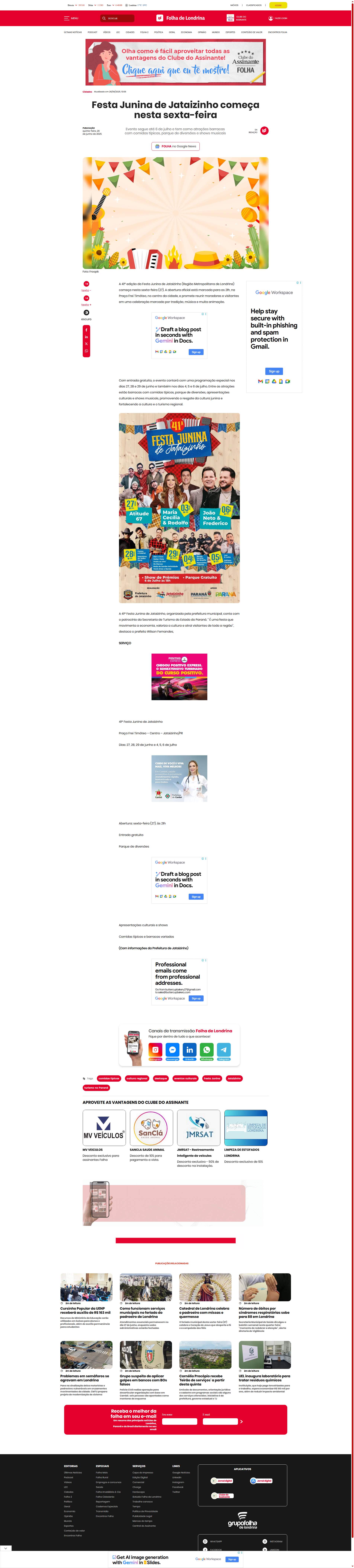 A 41ª edição da Festa Junina de Jataizinho (Região Metropolitana de Londrina) começa nesta sexta-feira (27). A abertura oficial está marcada para as 21h, na Praça Frei Timóteo, no centro da cidade, e promete reunir moradores e visitantes em uma celebração marcada por tradição, música e muita animação.