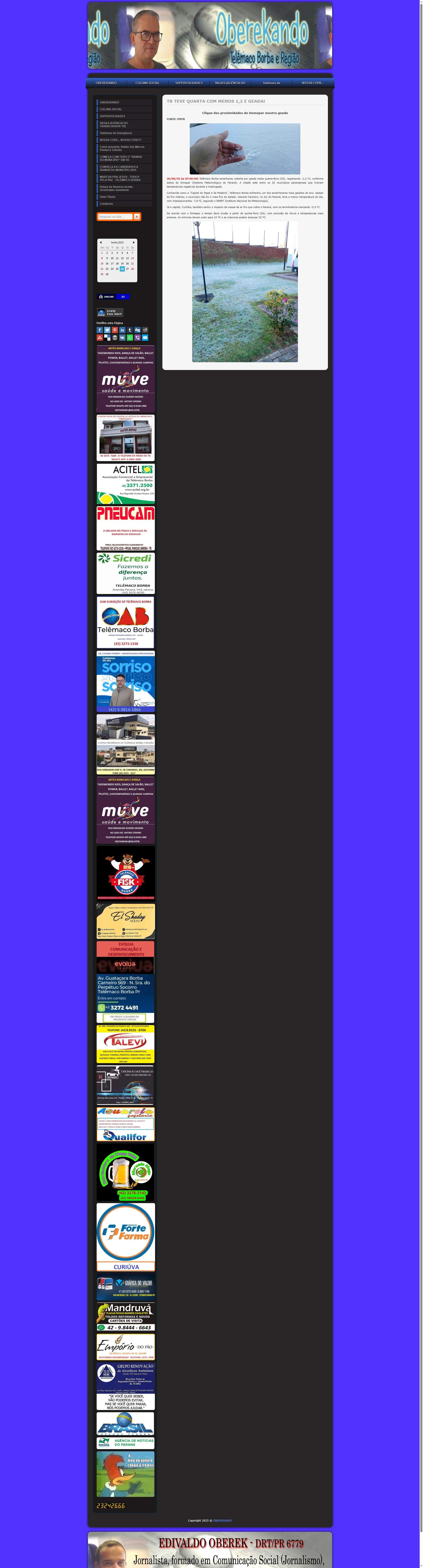 26/06/25 às 07:50:20) Telêmaco Borba amanheceu coberta por geada nesta quarta-feira (25), registrando -1,2 ºC, conforme dados do