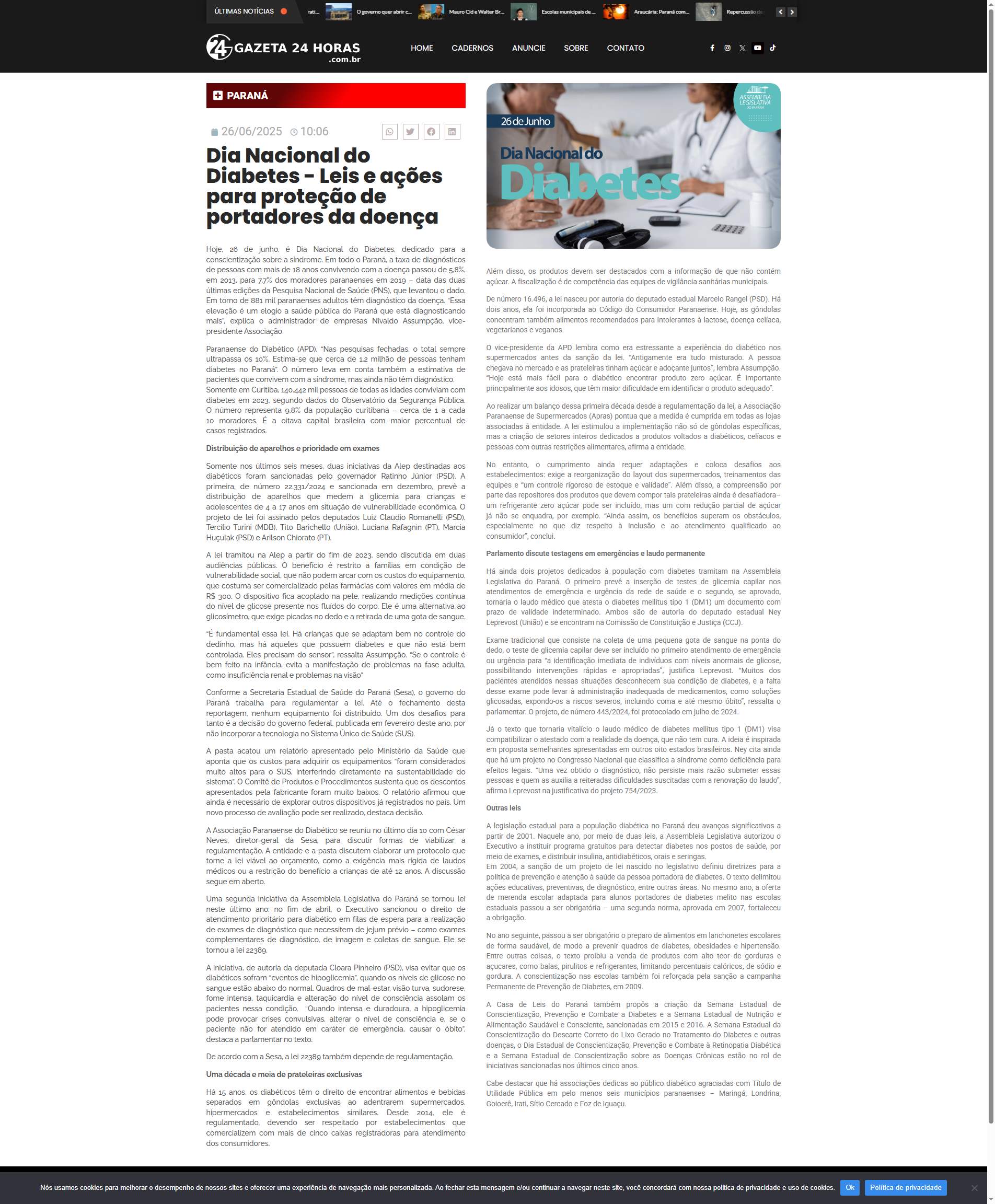 Cabe destacar que há associações dedicas ao público diabético agraciadas com Título de Utilidade Pública em pelo menos seis municípios paranaenses – Maringá, Londrina, Goioerê, Irati, Sítio Cercado e Foz de