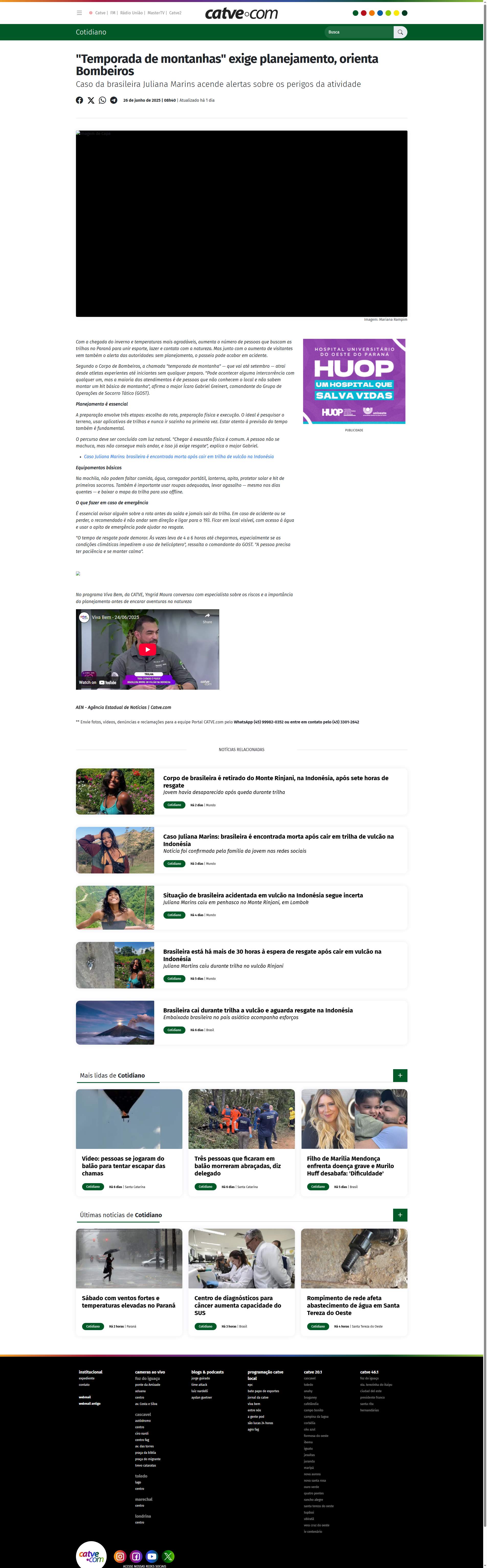 No programa Viva Bem, da CATVE, Yngrid Moura conversou com especialista sobre os riscos e a importância do planejamento antes de encarar aventuras na natureza
