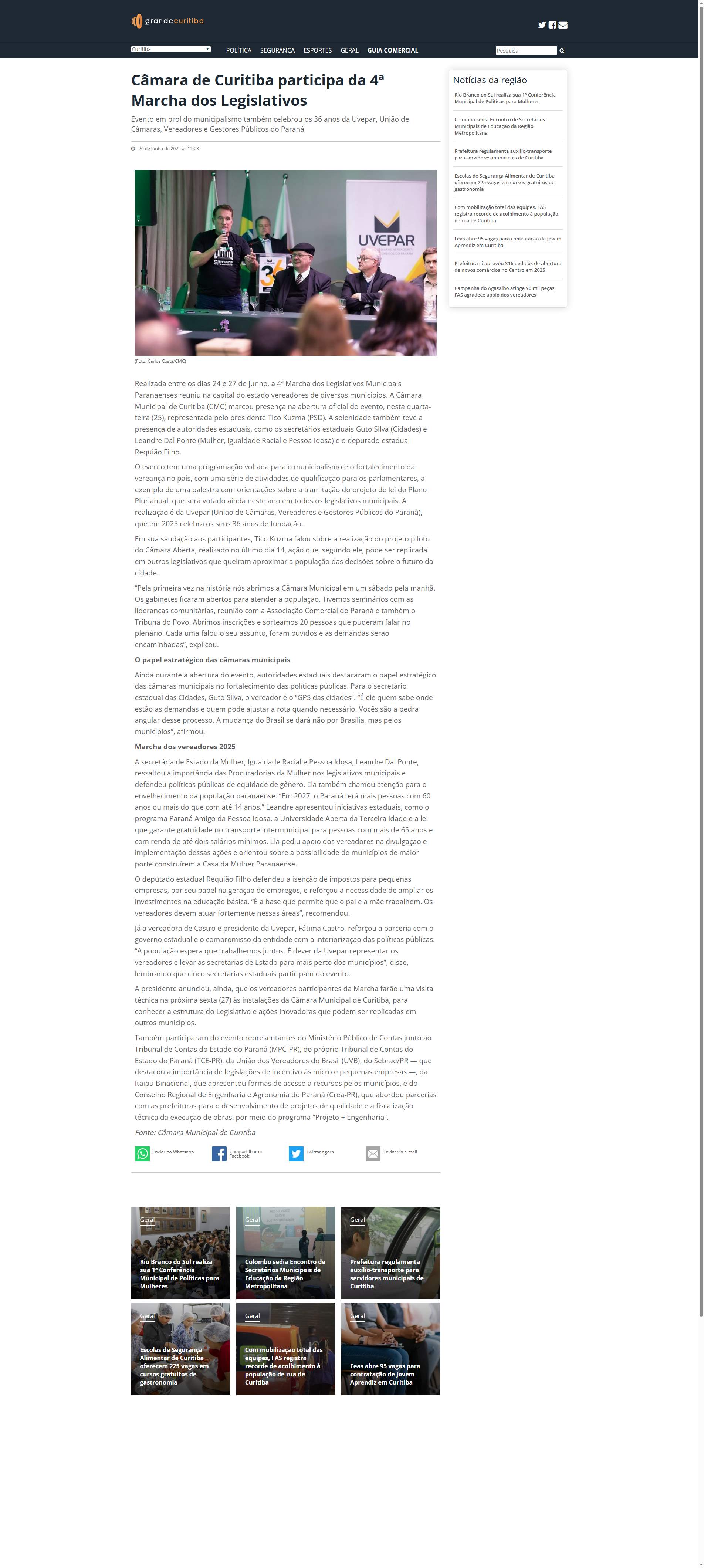A presidente anunciou, ainda, que os vereadores participantes da Marcha farão uma visita técnica na próxima sexta (27) às instalações da Câmara Municipal de Curitiba, para conhecer a estrutura do Legislativo e ações inovadoras que podem ser replicadas em outros municípios.