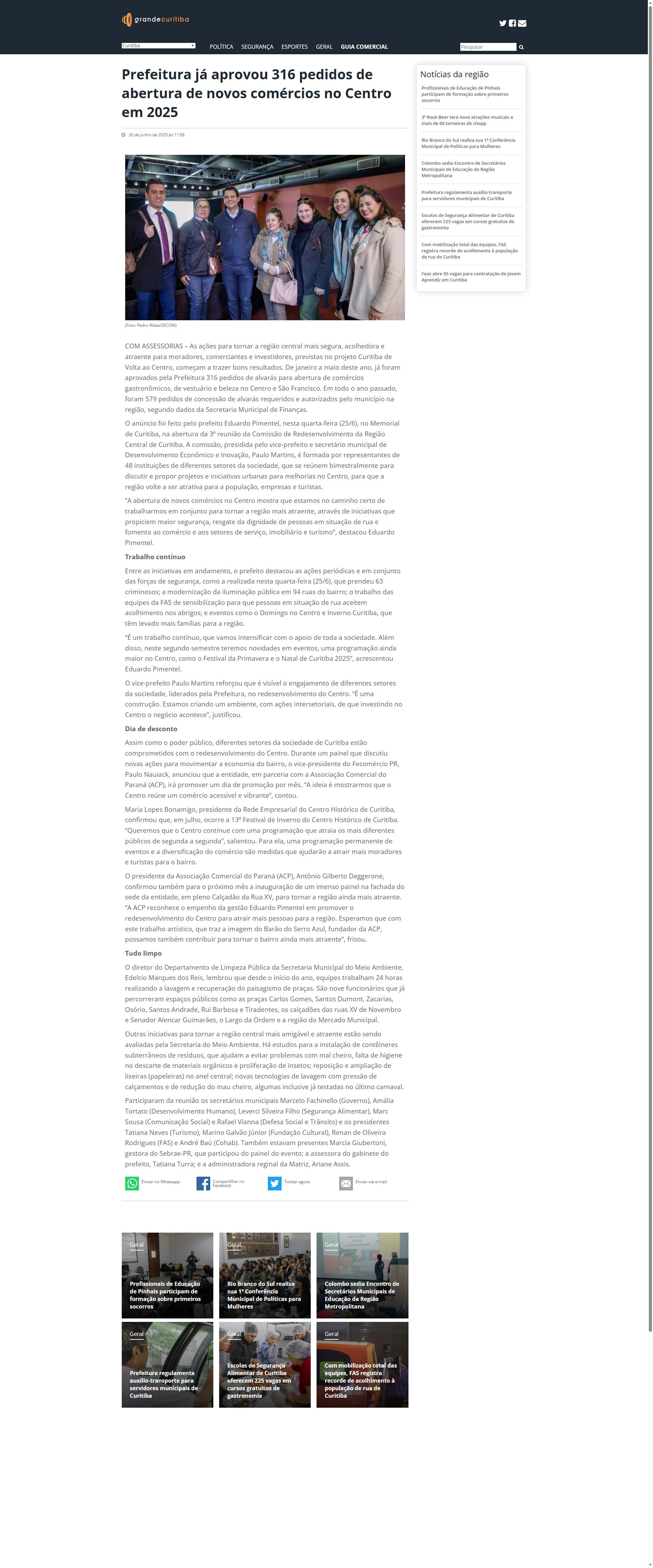 “É um trabalho contínuo, que vamos intensificar com o apoio de toda a sociedade. Além disso, neste segundo semestre teremos novidades em eventos, uma programação ainda maior no Centro, como o Festival da Primavera e o Natal de Curitiba 2025”, acrescentou Eduardo Pimentel.