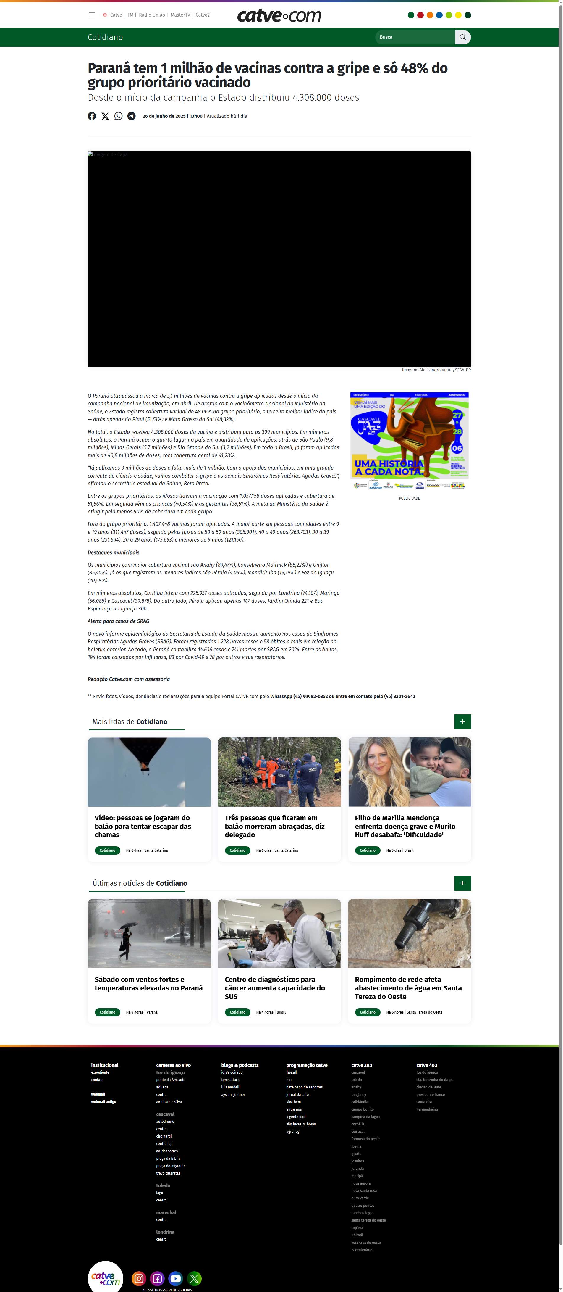 Em números absolutos, Curitiba lidera com 225.937 doses aplicadas, seguida por Londrina (74.107), Maringá (56.085) e Cascavel (39.878). Do outro lado, Pérola aplicou apenas 147 doses, Jardim Olinda 221 e Boa Esperança do Iguaçu 300.