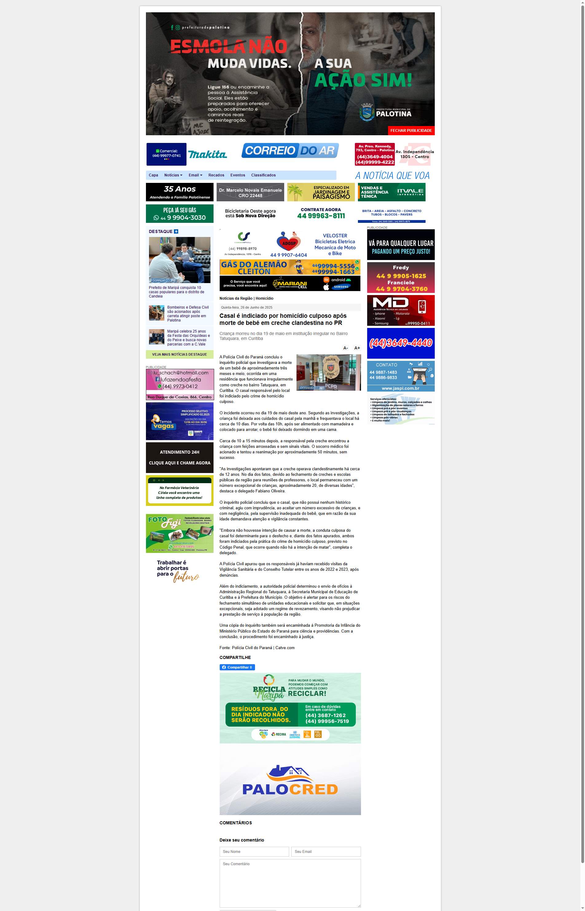 Polícia Civil do Paraná concluiu o inquérito policial que investigava a morte de um bebê de aproximadamente três meses e meio, ocorrida em uma residência que funcionava irregularmente como creche no bairro Tatuquara, em Curitiba. O casal responsável pelo local foi indiciado pelo crime de homicídio culposo.