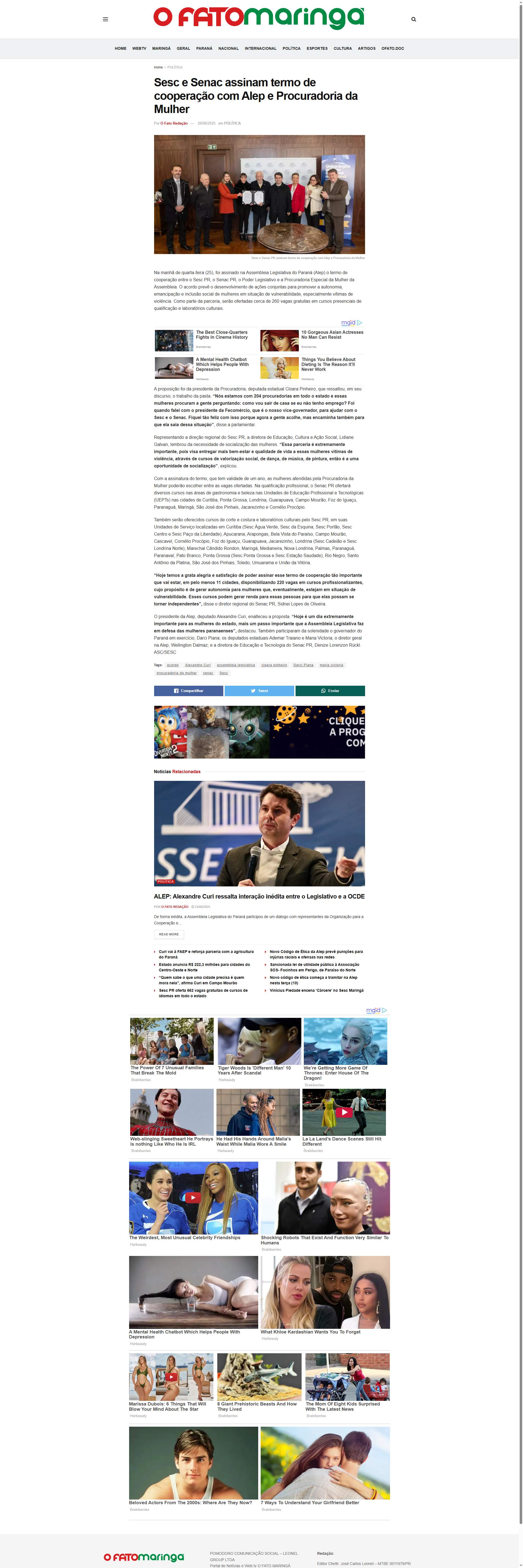 Na manhã de quarta-feira (25), foi assinado na Assembleia Legislativa do Paraná (Alep) o termo de cooperação entre o Sesc PR, o Senac PR, o Poder Legislativo e a Procuradoria Especial da Mulher da Assembleia. O acordo prevê o desenvolvimento de ações conjuntas para promover a autonomia, emancipação e inclusão social de mulheres em situação de vulnerabilidade, especialmente vítimas de violência. Como parte da parceria, serão ofertadas cerca de 260 vagas gratuitas em cursos presenciais de qualificação e laboratórios culturais.